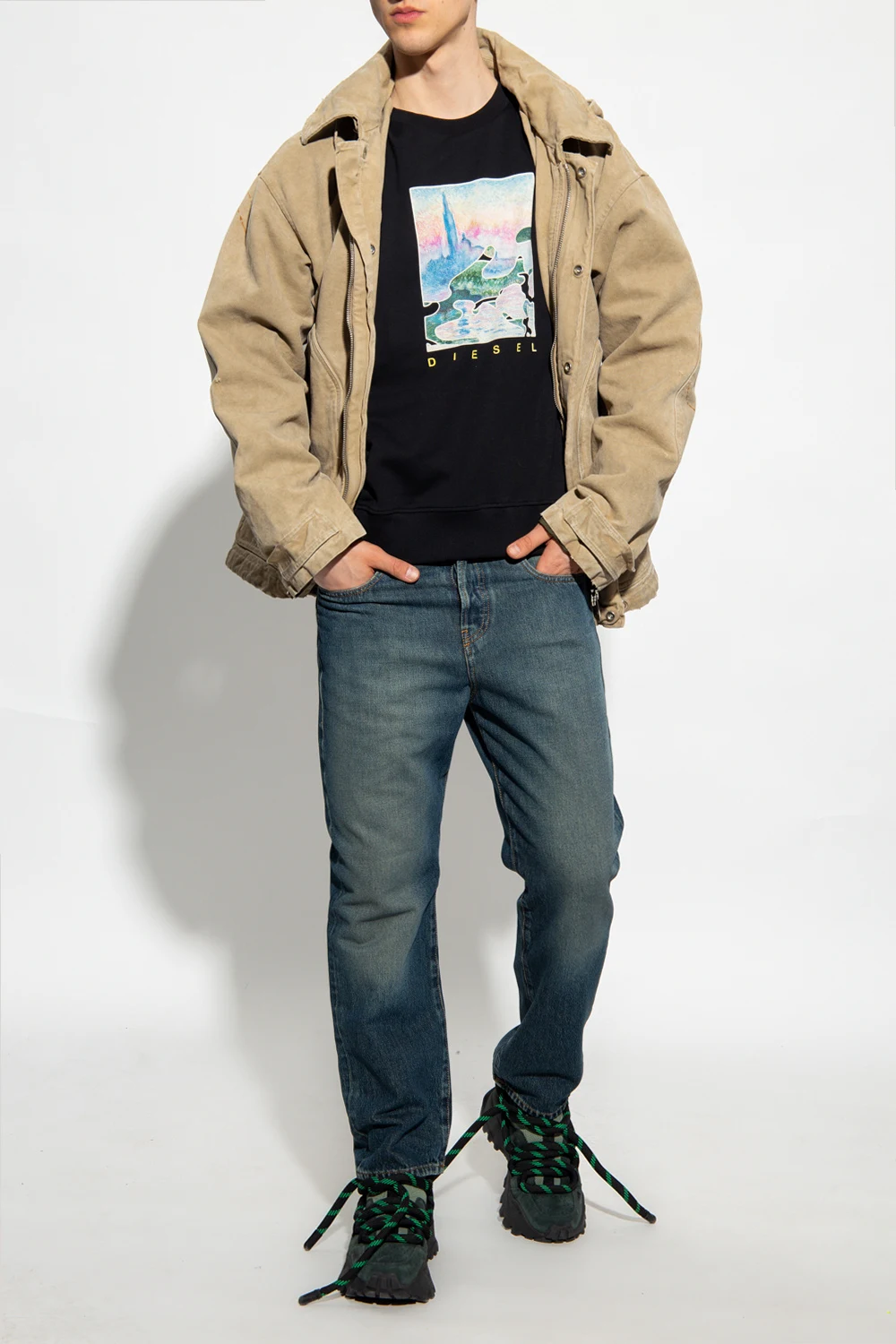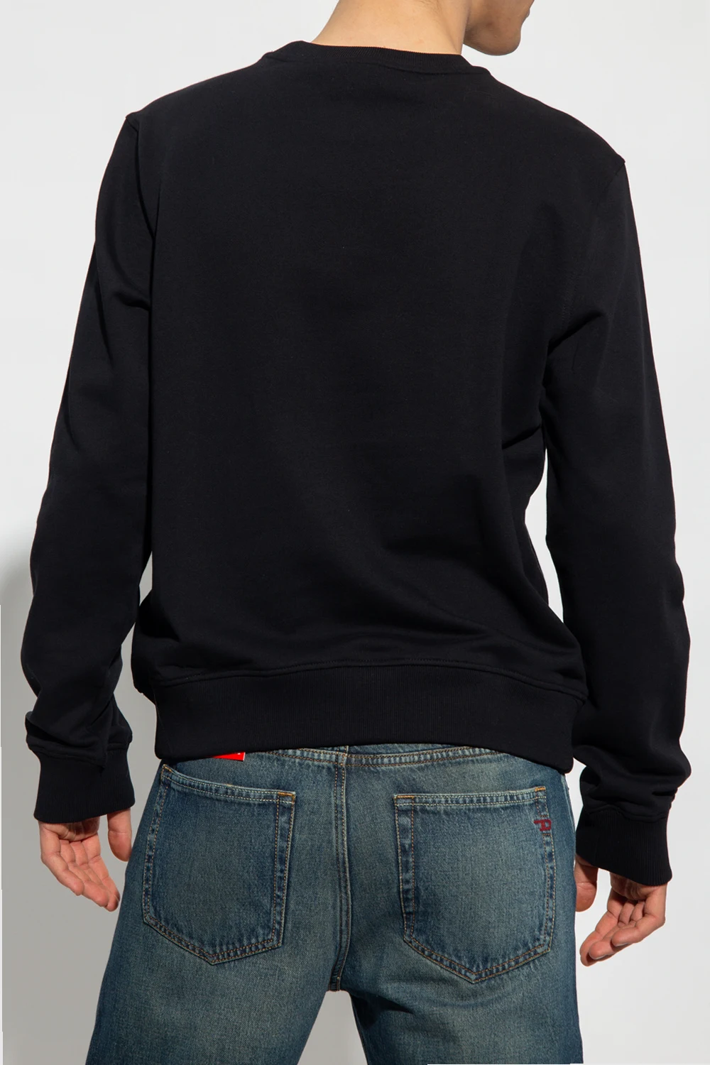 Black 'S-GINN-HS1' crewneck sweatshirt from Diesel. Made of cotton, this design is enriched by a multicolored logo print as well as ribbed trims at the hem and cuffs.