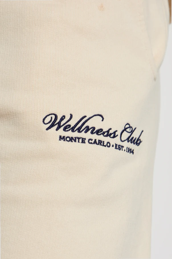 Elevate your casual repertoire with the Riviera Trousers by Sporty & Rich—an emblem of understated sophistication. Rendered in an exquisite cream hue, these unisex jogger-style pants are expertly crafted from luxurious, soft cotton, ensuring supreme comfort and a refined appearance. The classic silhouette features a gently tapered leg with sleek cuffs, exuding both versatility and timeless appeal. Thoughtfully designed for effortless wear, they boast a wide, elasticized waistband with subtle ruching for a flawless fit. Functional elegance is delivered via two front slip pockets and a single rear pocket. Distinguished by a signature navy embroidery reading “Wellness Club MONTE CARLO • EST. 1994” on the front, these trousers celebrate the brand’s legacy of embracing simplicity, everyday beauty, and sustainable luxury. Why choose this product? Premium, exceptionally soft cotton fabric Iconic and discreet designer embroidery Perfect balance of comfort and sophistication Timeless design for versatile styling Unisex fit, suitable for any occasion
