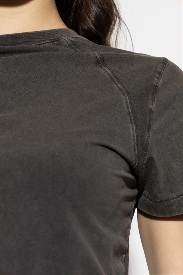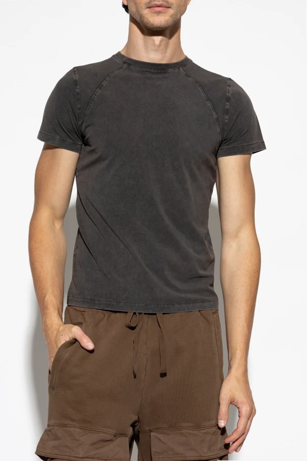 Discover understated sophistication with this unisex cotton T-shirt by ENTIRE STUDIOS. Refined in a soft, vintage-inspired washed gray hue , its classic regular fit silhouette, enhanced by subtly tailored sleeves and shoulders, flatters all figures. The material—premium cotton infused with the slightest stretch—offers enduring comfort and breathability with a gentle, modern drape. Exquisite decorative stitching around the shoulders and back neckline evokes a technical, contemporary edge, while distinct raglan seams impart a touch of designer uniqueness. Elegantly minimalist, the T-shirt remains free from patterns or visible branding, embracing a sleek, matte finish. The narrow ribbed collar punctuates its refined appeal. Why choose this product? Luxurious cotton construction ensures remarkable softness Unisex, adaptable cut for effortless styling Original decorative stitching and raglan seams for unique character Genuine minimalist design without logos or prints Designed by ENTIRE STUDIOS for elevated everyday comfort