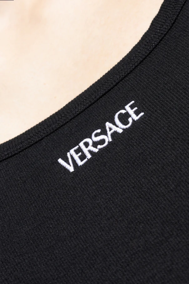 Evoking the alluring sophistication of contemporary Italian design, this Versace slip dress embodies timeless elegance with a modern twist. Meticulously crafted from luxurious, ribbed material, it gracefully conforms to the silhouette, offering exceptional comfort along with an effortlessly refined appeal. Its sleek, pure black hue is punctuated by a striking, white embroidered “VERSACE” logo beneath the softly rounded neckline—a subtle, yet unmistakable declaration of luxury and authenticity. Highlighting delicate, slender straps and a form-fitting cut that embraces the body to mid-thigh, this piece captivates with understated allure. The balance of cotton’s natural breathability and elastane’s gentle stretch ensures both style and ease, making it the quintessential underpinning or statement layer, seamlessly versatile for both intimate and outerwear moments. Why choose this product? Exquisite combination of Italian tradition and innovative craftsmanship Iconic Versace branding for effortless distinction Remarkably soft, flexible material for superior comfort Timeless black design suited for layering or standalone wear