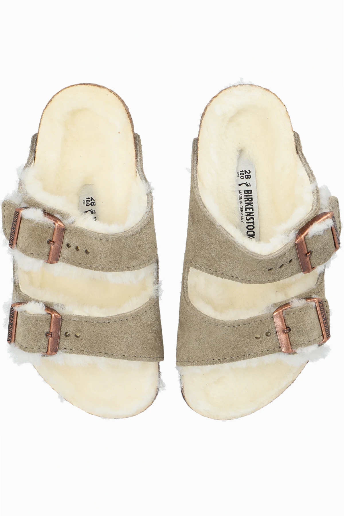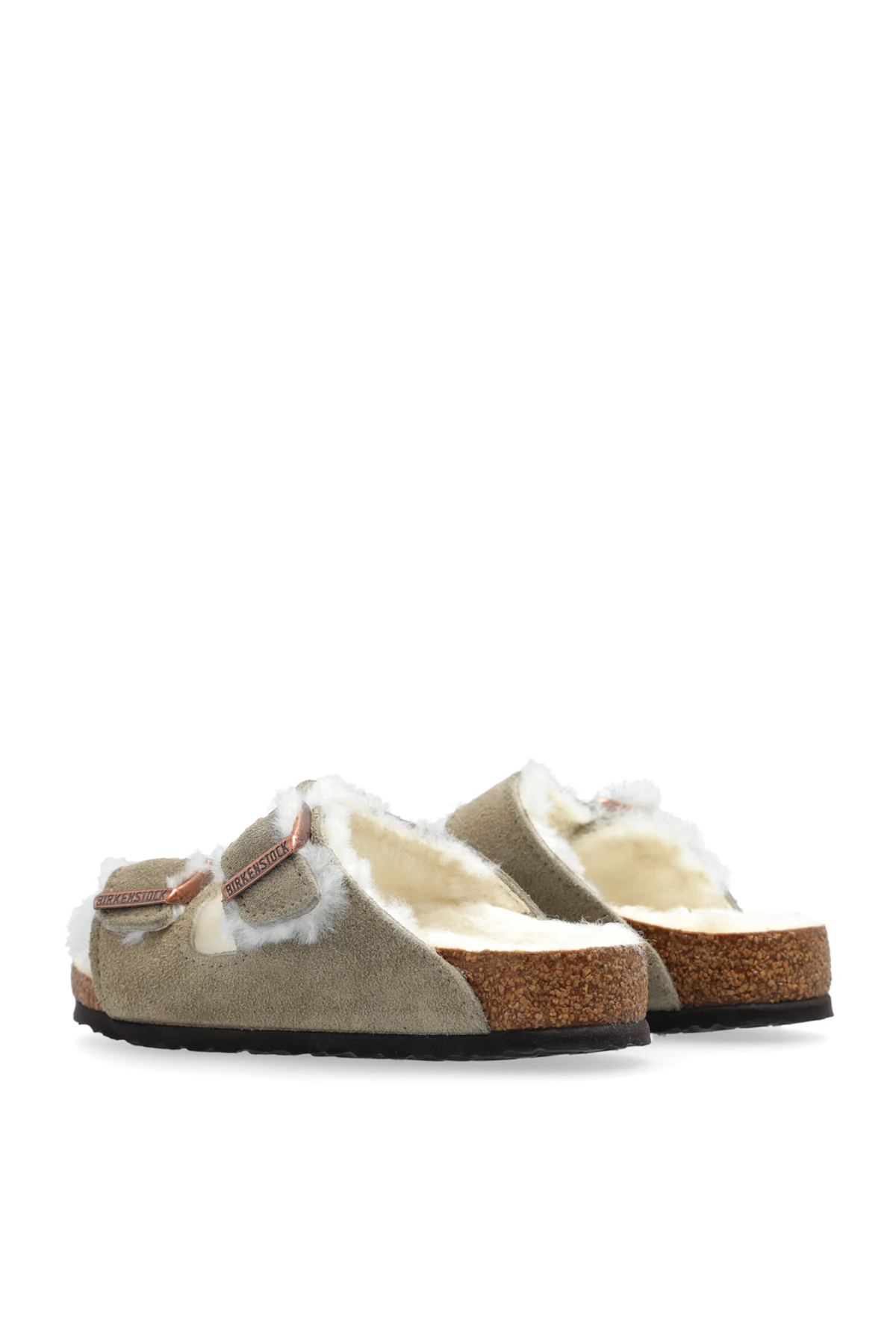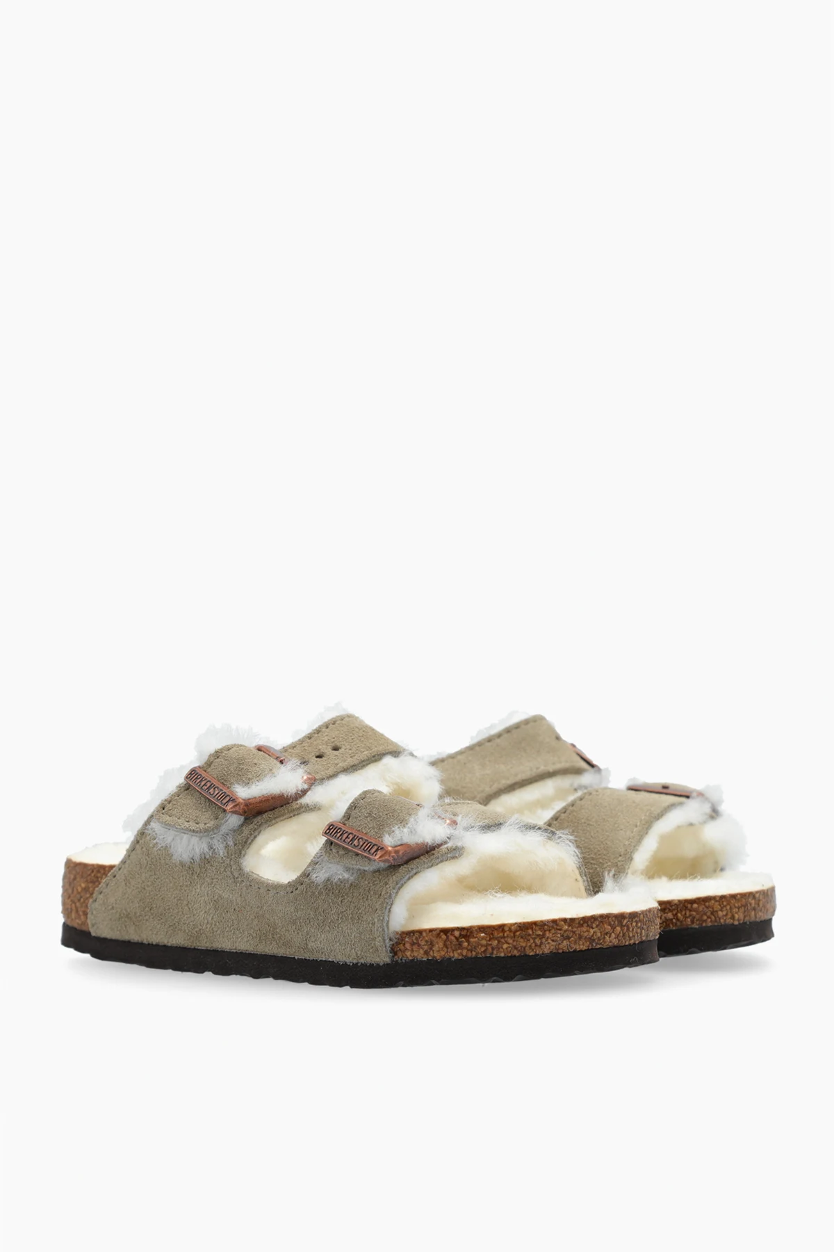 Introducing the Arizona Shearling Kids slippers by Birkenstock Kids, a testament to comfort and timeless design. Crafted for the discerning young wearer, these slippers blend functionality with a plush aesthetic appeal, making them a perfect addition to any child's wardrobe. The dual wide straps, adorned with adjustable metal buckles, offer a customizable fit to accommodate various foot widths. These straps are crafted from a high-quality, suede-like material in a sophisticated gray hue, ensuring durability while maintaining a soft touch. The interior of the straps and the insole are lined with a material reminiscent of sheep's wool, providing warmth and unparalleled comfort during wear. The sole, mimicking cork in appearance, is not only a nod to the iconic Birkenstock design but also offers contoured support and stability. This thoughtful design feature ensures that every step is cushioned and secure, making these slippers ideal for every adventure. Additional details such as the size marking and potentially the brand logo on the insole underscore the authenticity of the product, while the minimalist design speaks to the elegance that Birkenstock Kids is renowned for. Why Purchase the Arizona Shearling Kids Slippers? Constructed from 100% genuine leather with a 100% fur lining for warmth and comfort. Adjustable metal buckles ensure a perfect fit, adapting to your child's foot. The cork-like sole provides additional stability and support. Minimalist and sophisticated design, making it a versatile addition to any outfit. Features such as the size marking and brand logo highlight the slippers' authenticity and quality.