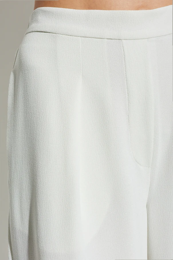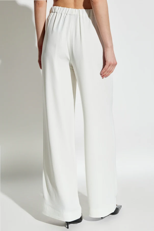 The high-waisted profile is enhanced by a wide, elasticized waistband, ensuring supreme comfort and a flawless, tailored look. Crafted from a premium, unadorned polyester fabric, the smooth, lightweight material glides effortlessly against the skin and maintains an impeccable appearance throughout the day. Discreet pleats beneath the waist add subtle detail, while the absence of pockets and fastenings underscores their minimalist ethos.