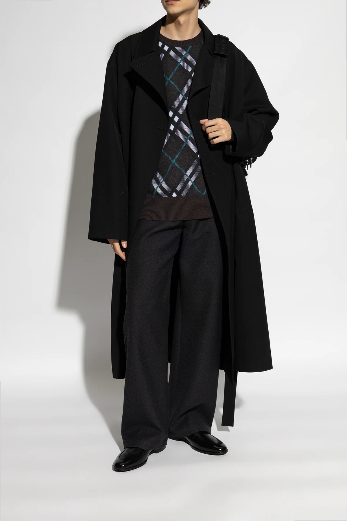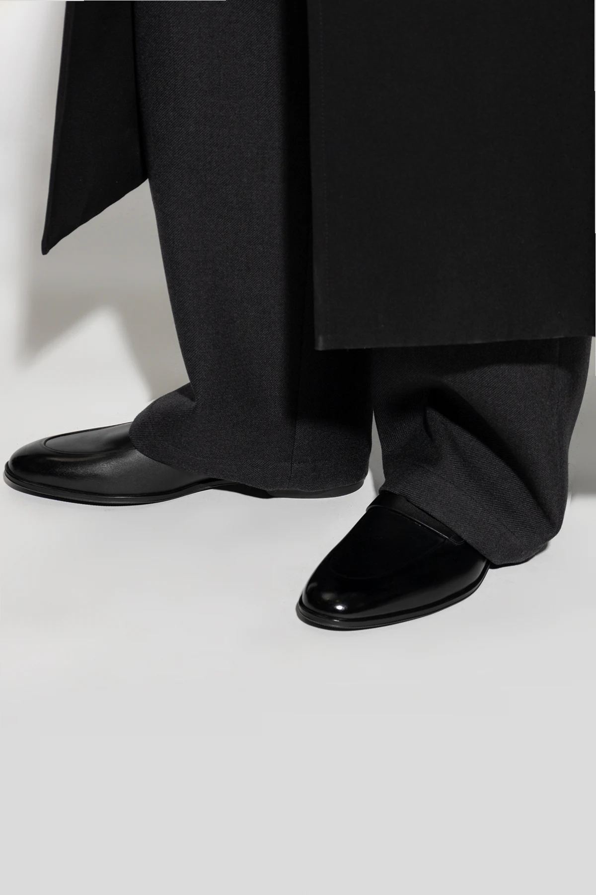 Introducing the Byty 'Windsor' loafers by Bally, an embodiment of classic elegance and superior craftsmanship. These loafers, crafted from 100% premium smooth leather, boast a timeless design that complements formal attire seamlessly. The dominant black hue enhances their versatility, while the iconic penny strap across the vamp adds a distinctive mark of sophistication. The rounded toe of these loafers softens their silhouette, infusing a traditional charm into their overall design. Inside, the contrast of the light brown leather lining against the black exterior not only provides a visually appealing element but also showcases the designer's attention to detail, with the Bally logo subtly imprinted. Constructed with a rubber and leather sole, these loafers promise durability and comfort, making them ideal for both special occasions and everyday elegance. Photographed from various angles and in context with a complete outfit, the Byty 'Windsor' loafers are presented as a refined addition to a sophisticated wardrobe, particularly when paired with suits or long coats. Why Purchase the Byty 'Windsor' Loafers? Exquisite Material: Crafted from 100% high-quality leather, ensuring durability and a luxurious feel. Timeless Design: The classic, elegant design with a penny strap and rounded toe offers versatility and style. Designer Craftsmanship: From the renowned house of Bally, these loafers are a testament to expert craftsmanship and design prowess. Versatile Elegance: Perfect for formal occasions, yet equally suitable for enhancing everyday attire.