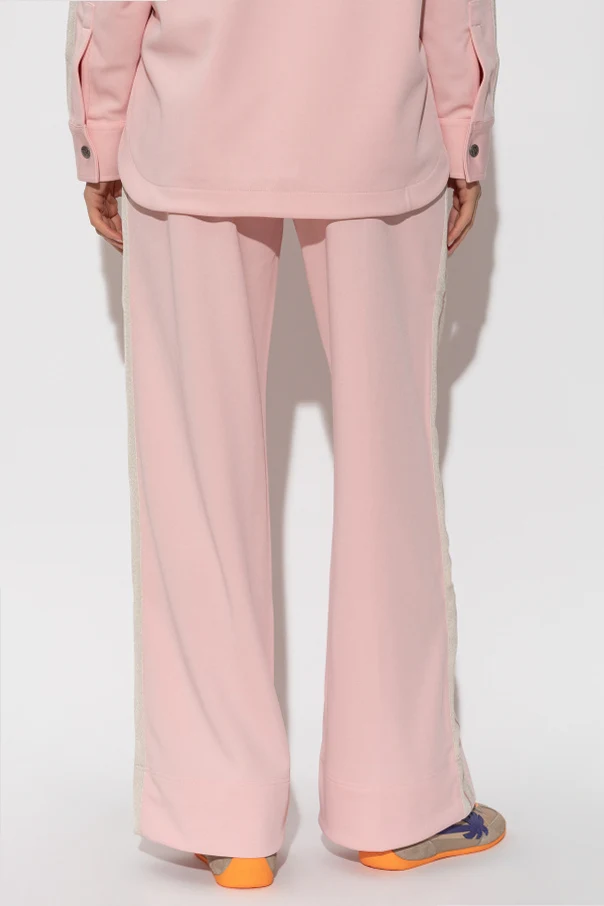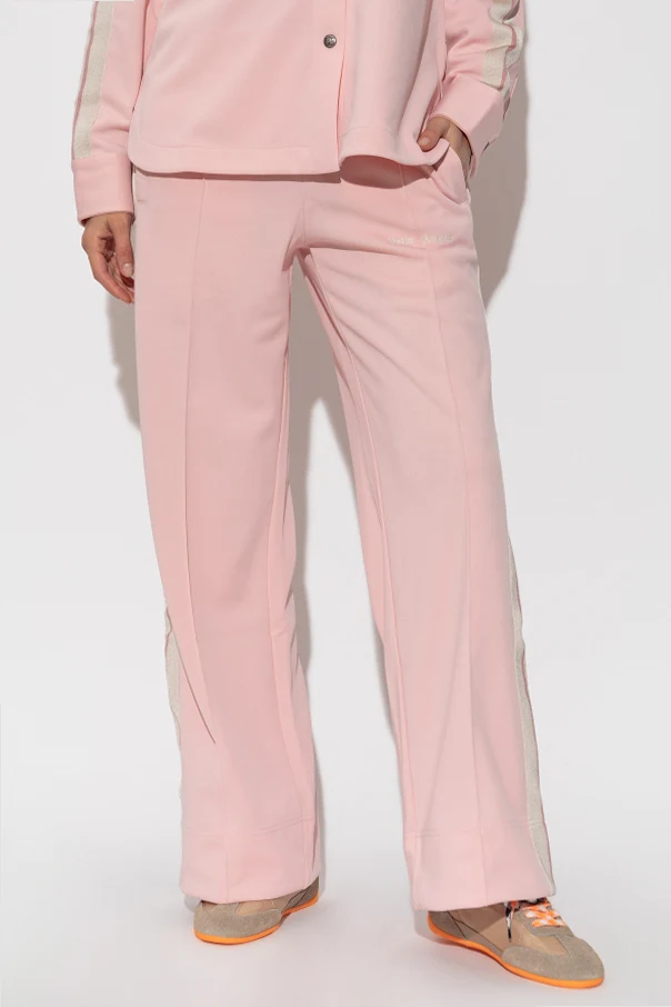 Discover timeless sophistication with these straight-leg trousers by Palm Angels . Carefully crafted from a sumptuously soft, high-quality knit, these full-length pants offer subtle elasticity for supreme comfort. The silhouette exudes refined nonchalance, with relaxed legs that gently fall from the hip to the hem, ensuring effortless elegance for any occasion. A contrasting side stripe in a delicate pastel hue traces each outer seam, providing a modern accent to the minimalist design. The elasticized waistband ensures a tailored, comfortable fit. Discreet side pockets lend practicality, while exquisite embroidered branding at the hip affirms their status in the label’s exclusive collection. Meticulous vertical stitching further elongates the form, underscoring a streamlined aesthetic. Why choose this product? Exclusively designed by Palm Angels, blending Italian tailoring with contemporary street flair Luxurious, resilient material with gentle stretch for unrestricted movement Distinctive details—contrast stripe, side pockets, and subtle logo embroidery—for understated distinction Impeccable fit and lasting comfort thanks to the elastic waistband and premium fabrication