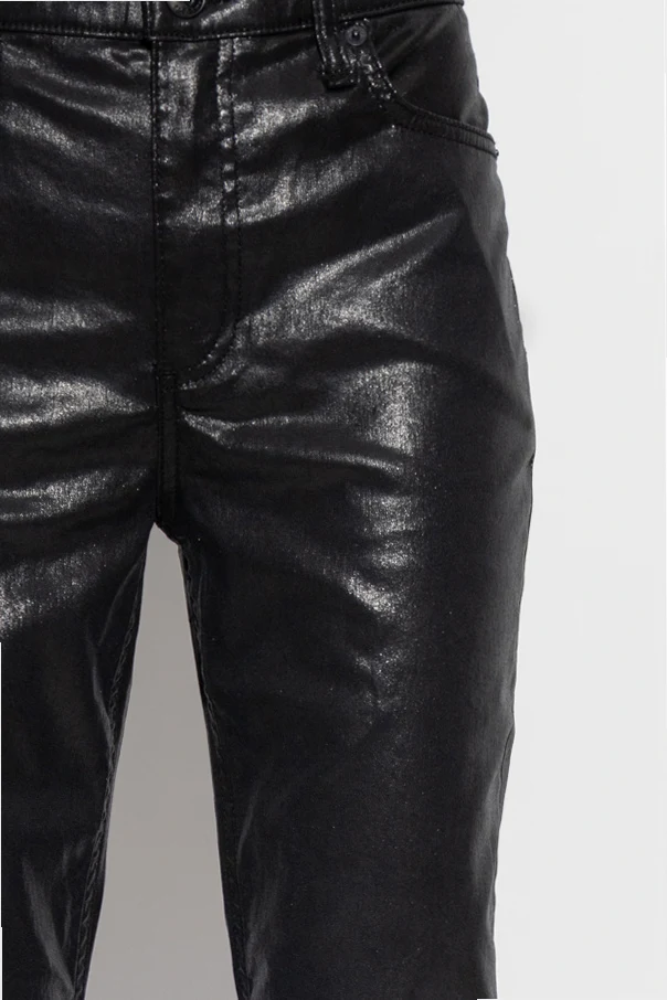Discover the refined allure of the Rag & Bone Black Bootcut Jeans , an exclusive piece crafted for discerning wardrobes. Sculpted with a classic bootcut silhouette, these jeans feature a precisely tailored upper and thigh with beautifully flared legs, elegantly accentuating the waist and elongating the silhouette. Created from a supple, high-gloss denim, their lustrous black fabric sets a new standard for contemporary sophistication. The luminous, sleek surface distinctly elevates these jeans above traditional matte designs, while the understated, seamless finish ensures timeless versatility. Complete with refined belt loops, subtle side pockets, and a signature zip-and-button closure, each detail reflects Rag & Bone’s renowned commitment to understated luxury and modern form. Why choose this product? Exclusive, high-shine stretch denim for unmatched elegance Flattering bootcut shape visually lengthens legs and enhances the waist Versatile jet black color with unique, glossy finish Expert tailoring from esteemed designer Rag & Bone Timeless, pattern-free design for limitless styling