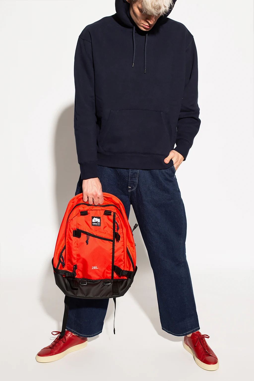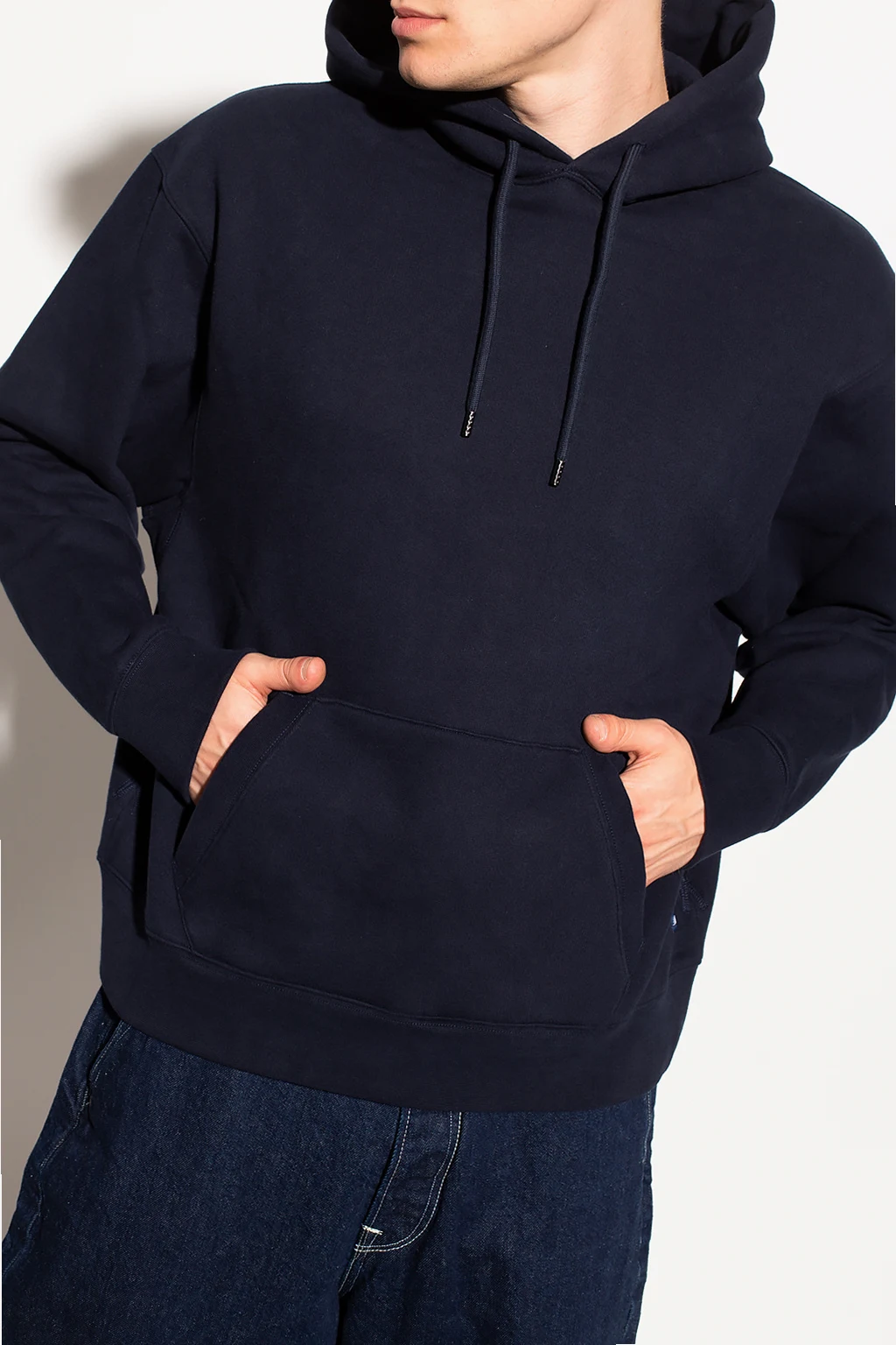 Navy blue sweatshirt with a drawcord-adjustable hood from Levi’s, the ‘Made & Crafted ®’ collection. Crafted from sustainably produced the highest quality organic cotton. This hoodie features a kangaroo pocket and a ribbed bottom hem and cuffs.