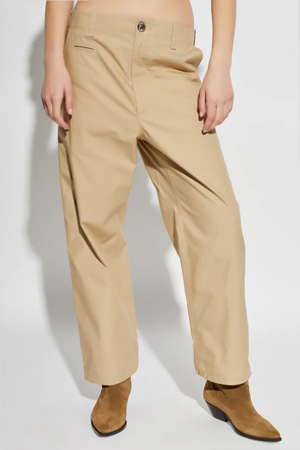 Experience elevated casual style with these classic black cargo trousers from renowned designer Moschino . Crafted from fine, resilient cotton fabric with a matte finish, these trousers merge enduring comfort with sophisticated structure. Their slightly relaxed silhouette, gently tapered at the ankle, flatters the figure while delivering a modern, streamlined profile. Distinctive details include a sleek, minimalist design free from prints, a front button and concealed zip closure, and a traditional belt loop waistband. Functional artistry shines in the thoughtfully placed front seam pockets, a decorative coin pocket, and two angular back flap pockets secured with refined buttons. Each element reflects Moschino’s celebrated spirit of luxury blended with playful innovation. Why choose this product? Superior cotton material for durability and comfort Flattering, slightly tapered cut shapes the silhouette Iconic Moschino design ensures timeless, versatile elegance Minimalist, print-free aesthetic for effortless sophistication Functional pocket detailing enhances practicality and refinement