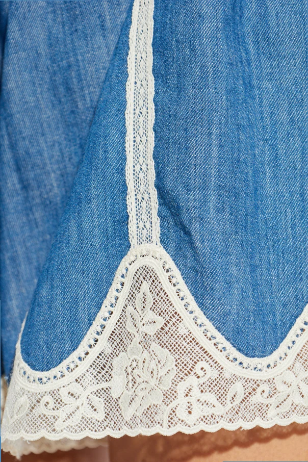 Immerse yourself in the refined artistry of Zimmermann with these blue denim shorts , exquisitely accentuated by a wide, white lace trim. Their airy, subtle weave cotton fabric ensures a light and breathable wearing experience, while the relaxed, flared silhouette with wide legs offers unrivaled comfort and freedom of movement.