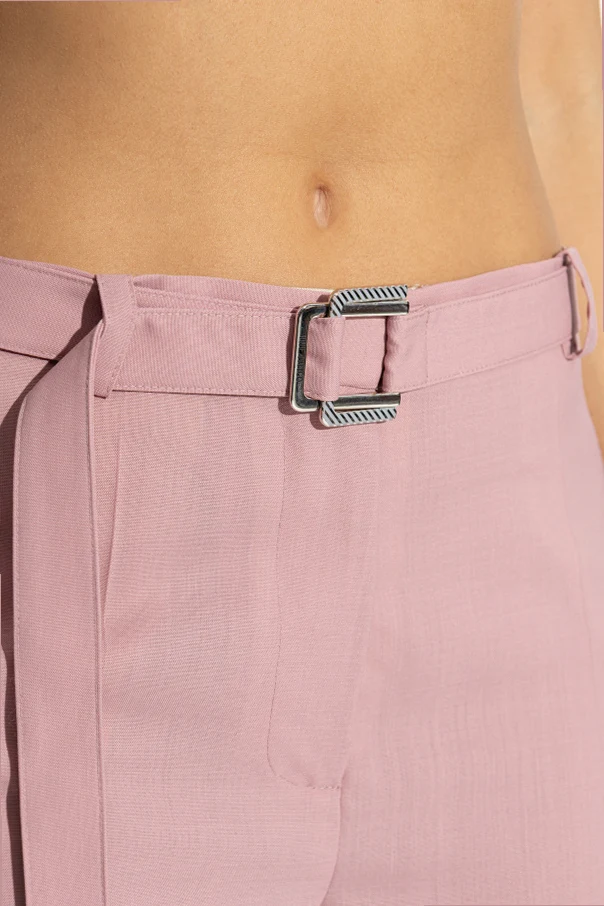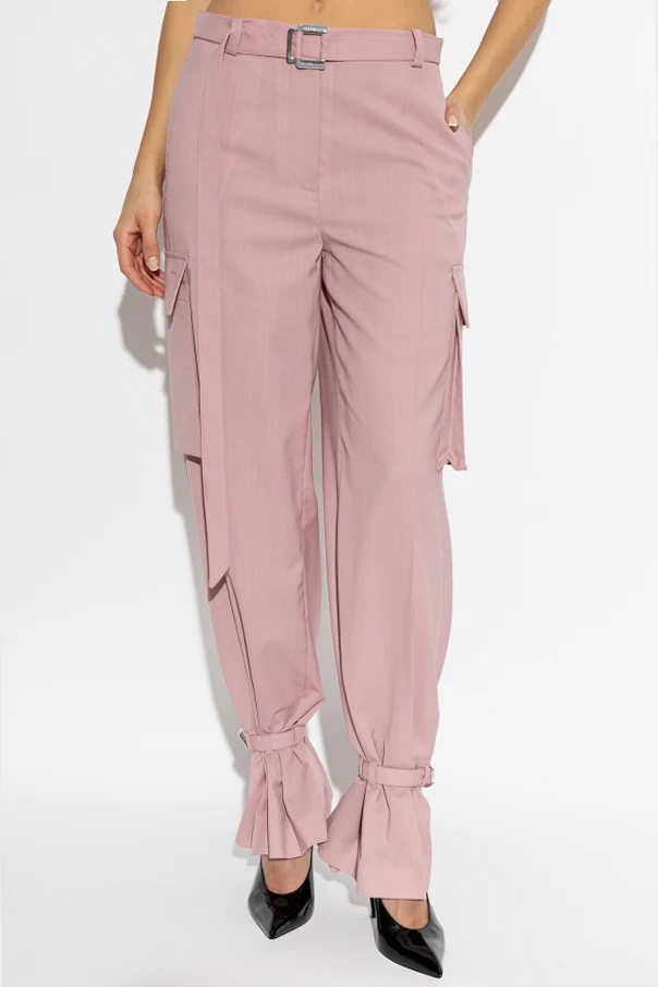 The relaxed, slightly tapered silhouette flatters the figure, culminating in exquisitely ruched ankles adorned with dramatic ties. Iconic side cargo pockets with flaps add both functionality and unmistakable style, while the matching belt, showcased with a rectangular metal buckle, delivers a chic finishing touch. An inner viscose lining ensures exceptional comfort for the most discerning of wardrobes.