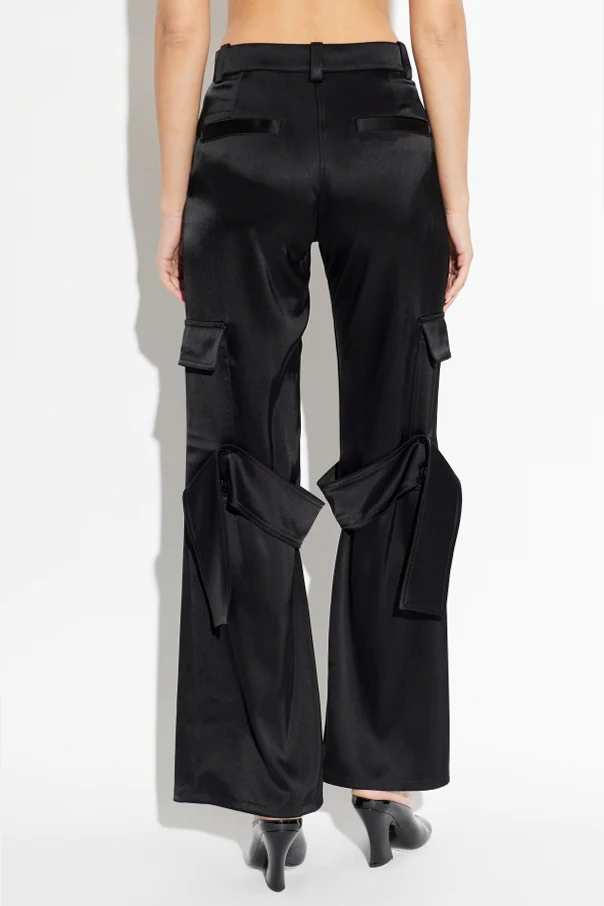 Experience refined sophistication with these Satin Cargo Pants from Courrèges, crafted in a sumptuous satin fabric that gently catches the light for a subtle, opulent sheen. Their wide, straight-leg silhouette and precisely contoured high waist define a contemporary yet timeless profile, while minimalism reigns with a smooth, unembellished finish.