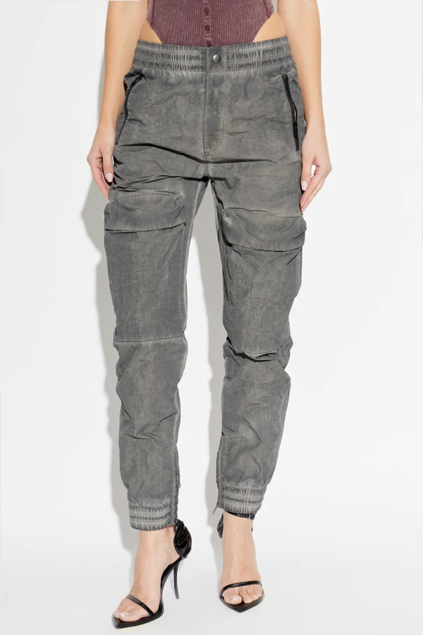 Experience elevated versatility with the ‘P-RIDE-S1’ Cargo Pants by Diesel, impeccably crafted in sophisticated gray . These women's trousers present a refined, gently tapered silhouette, embodying modern flair with a casual essence. The medium-weight fabric, featuring a subtly washed, matte texture, imparts a sense of understated luxury and contemporary poise.