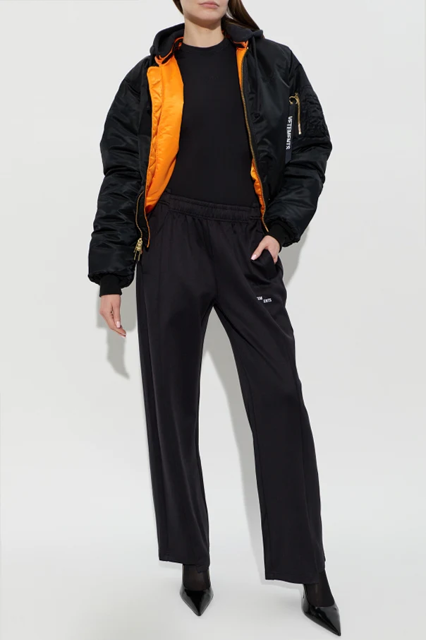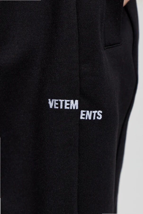 Features a unique, split “VETEMENTS” logo embroidery for signature distinction