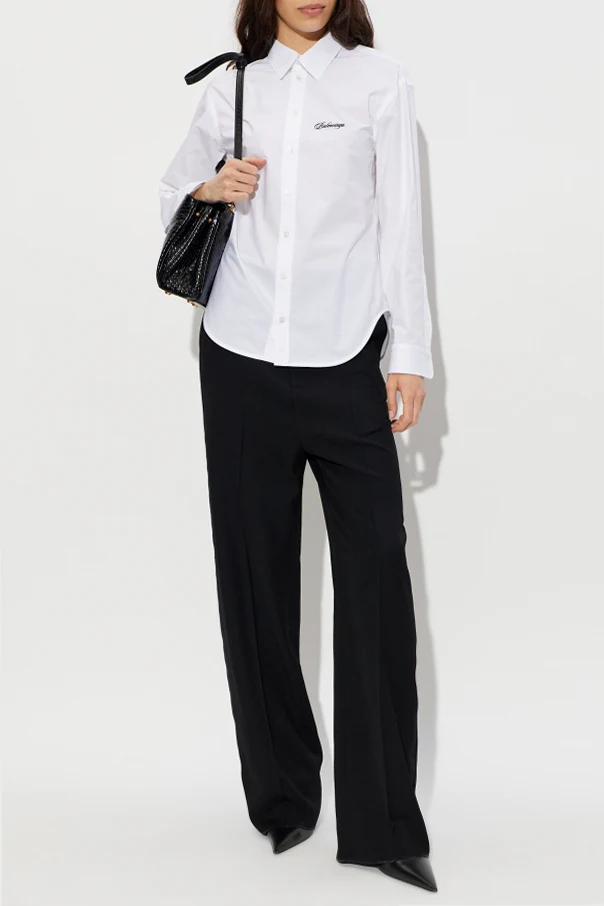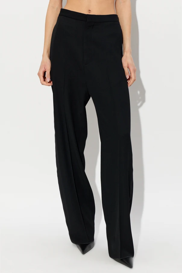Discover understated luxury with these straight-leg wool trousers in classic black by Balenciaga . Tailored with a high-waisted, gently relaxed silhouette and elegantly wide legs, they exude contemporary refinement. The premium, smooth wool fabric offers exceptional comfort and durability, making these trousers an essential for sophisticated wardrobes.