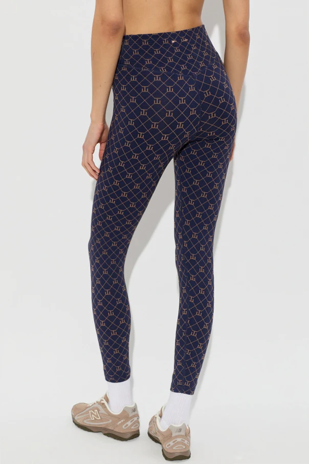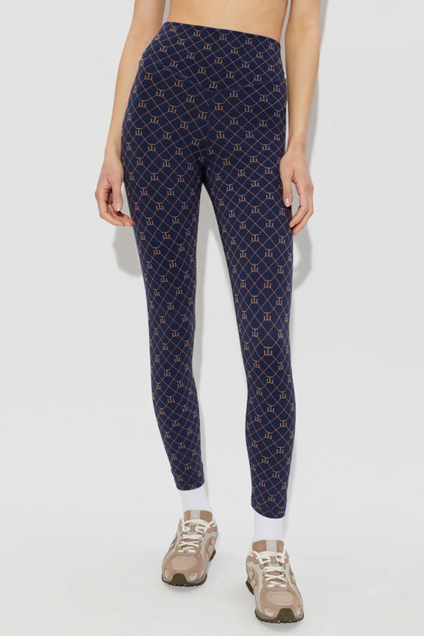 Indulge in refined sophistication with the Ezra leggings by The Upside , a masterful blend of contemporary style and supreme comfort. These navy leggings showcase a classic, high-waisted silhouette that gracefully contours the figure for an elegant, sculpted look. The striking, all-over geometric check pattern is accentuated by a subtle, recurring monogram—the designer’s signature touch—woven seamlessly into each segment for an unmistakable mark of exclusivity.