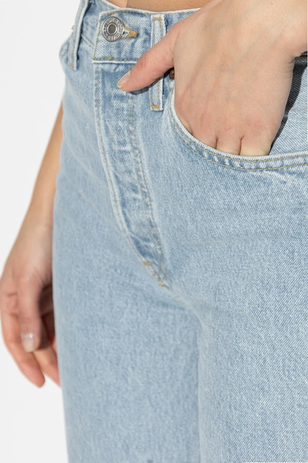 Discover refined minimalism with these straight-leg jeans from RE/DONE, meticulously crafted in pure, premium cotton denim. Impeccably tailored in a timeless light blue hue, their structured silhouette and high-rise waist elegantly accentuate the natural contours of your figure, while ensuring enduring comfort and style.
