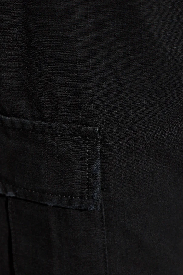 Discover a refined take on utilitarian sophistication with these black cargo trousers by Balenciaga . Crafted from densely woven canvas with a distinct texture, these pants exhibit exceptional craftsmanship and a subtle yet bold aesthetic. The relaxed straight-leg silhouette features a cropped length, gracefully finishing above the ankle for a contemporary profile.