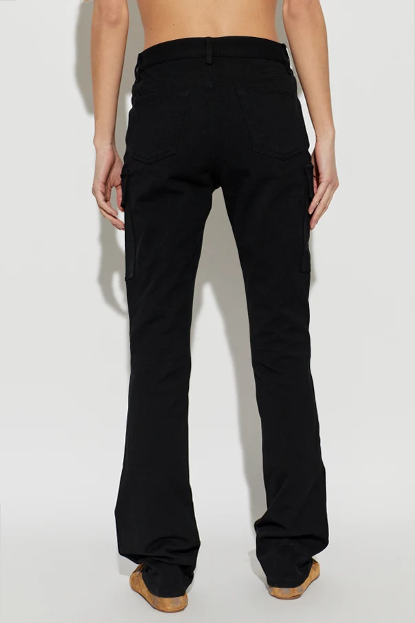 Impeccably crafted, these black cargo trousers by Acne Studios embody modern sophistication and utilitarian charm. The classic straight-leg silhouette is thoughtfully refined with a subtle bootcut flare, achieving effortless elegance and versatility for the contemporary woman.