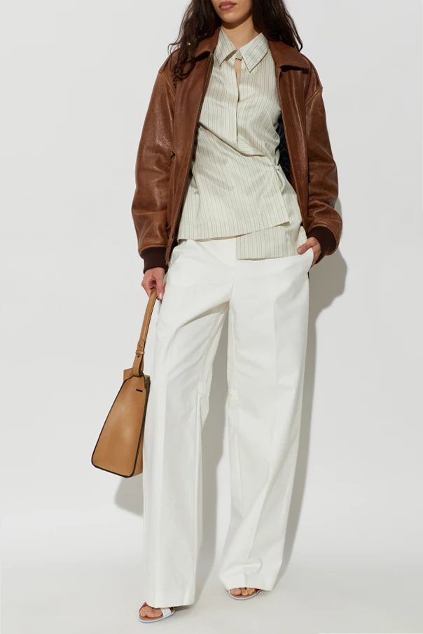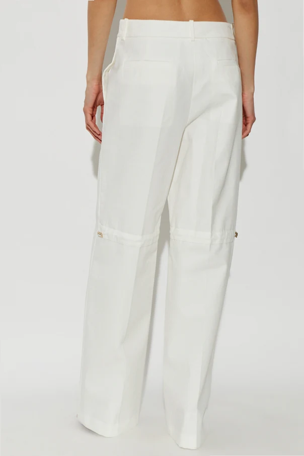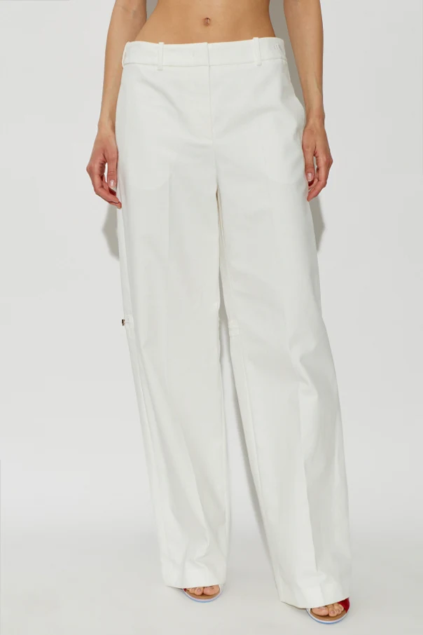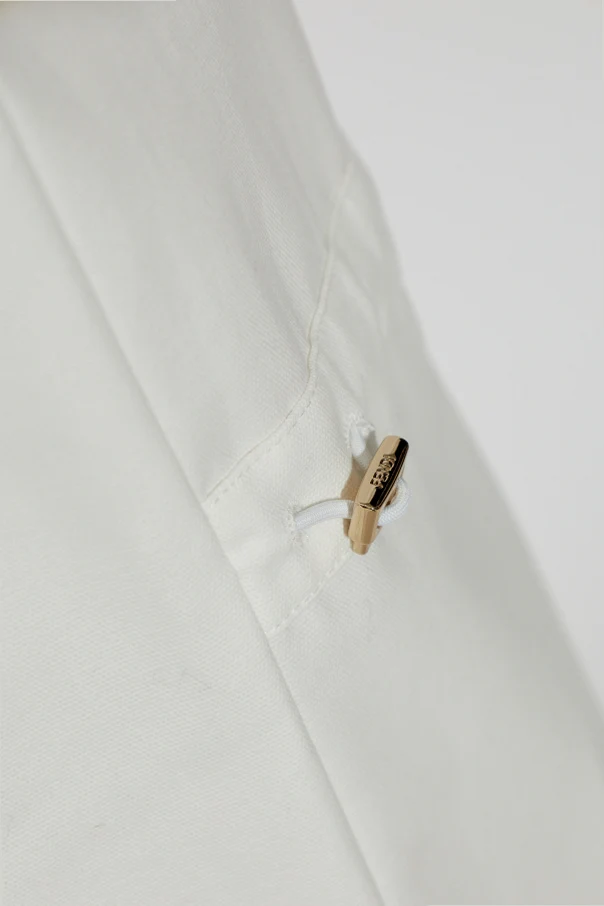 Exquisite in form and fabric, these white wide-leg cotton pants from Fendi epitomize contemporary sophistication. Meticulously tailored from smooth, high-grade cotton, they offer a perfect balance of lightness and a crisp, structured silhouette. The elongated, classic fit accentuates an elegant profile, while the prominent front seam bestows an effortlessly polished look.
