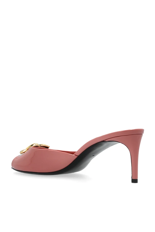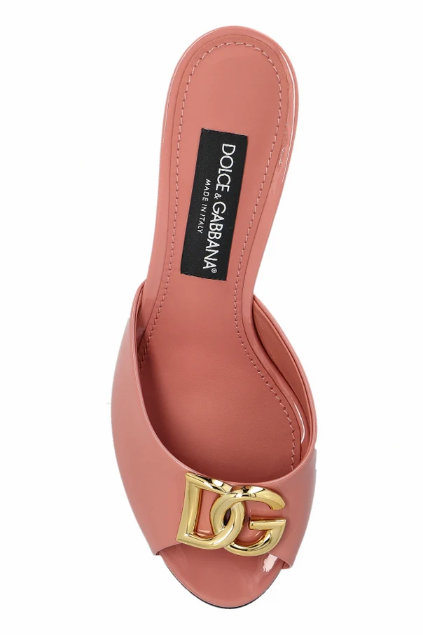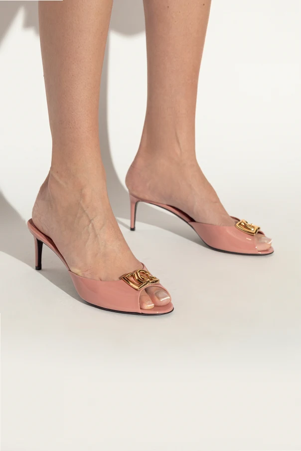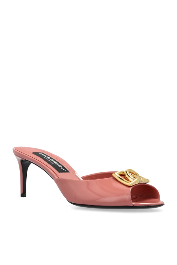 Introducing the Dolce & Gabbana Mules , an exquisite addition to the realm of women's footwear. These pink heeled mules are crafted from lustrous patent leather that gleams with sophistication. The striking golden logo adorning the front adds a touch of opulence, perfectly complementing the slender mid-height heel that exudes refined elegance.