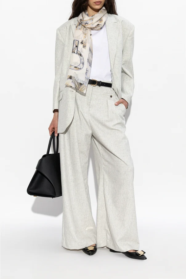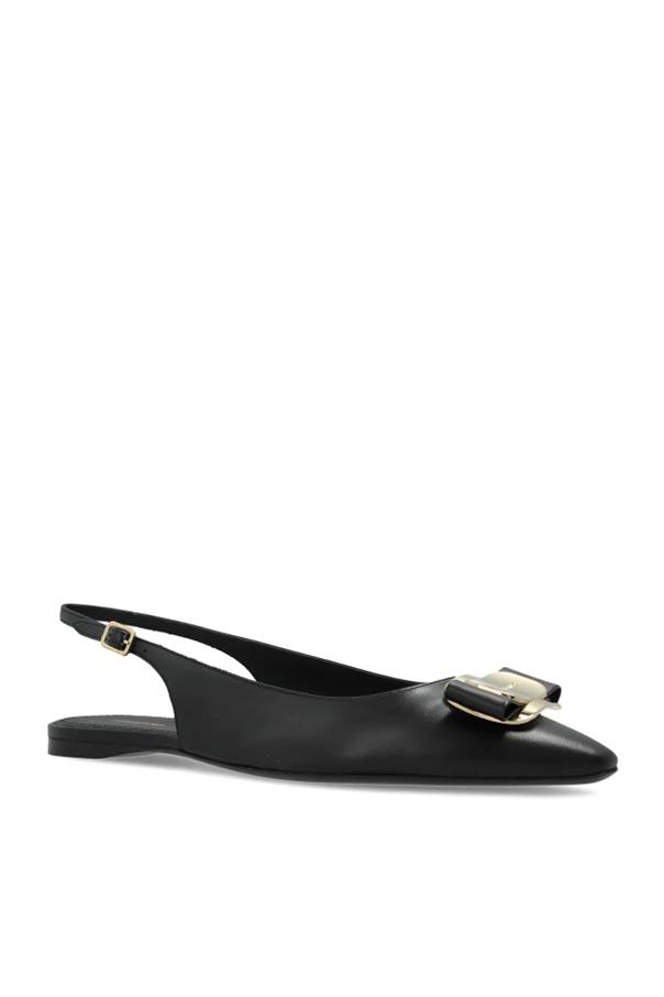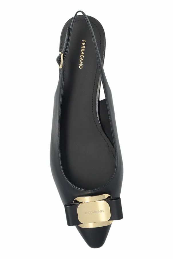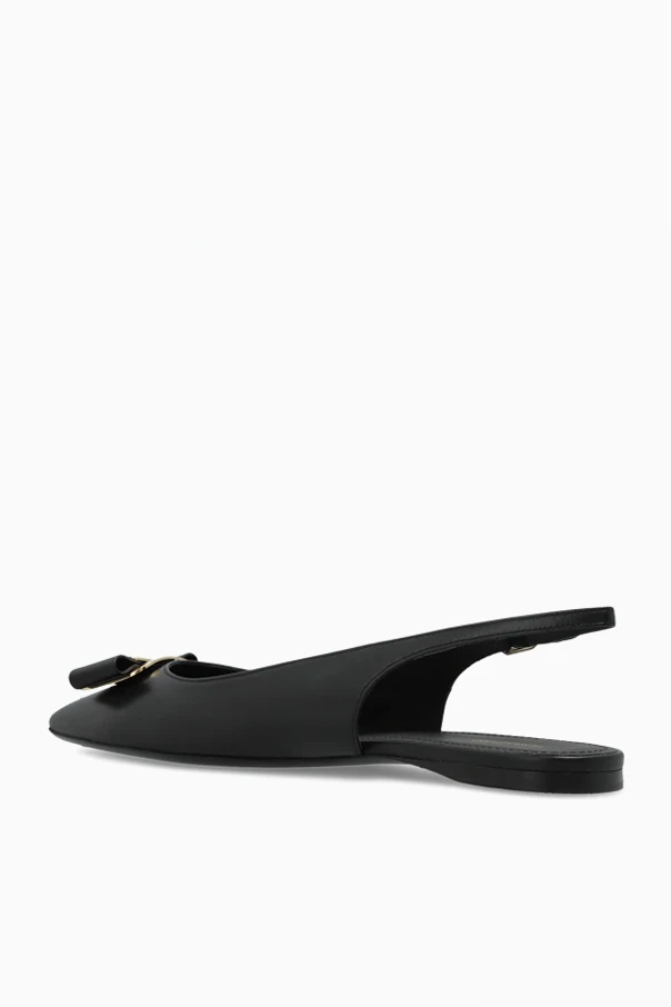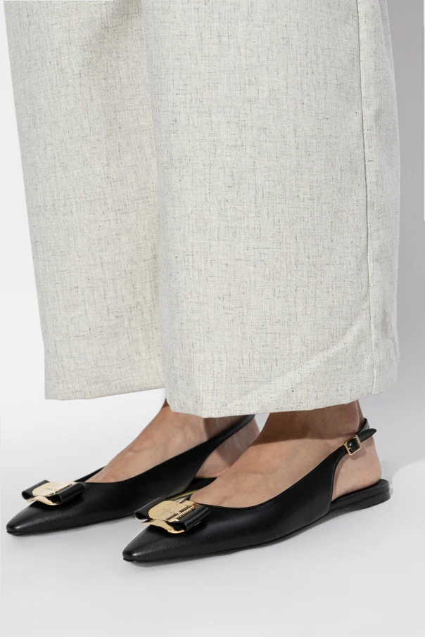Exuding refined sophistication, the “Zelmy” flat ballerinas by FERRAGAMO seamlessly elevate any ensemble with their graceful silhouette. Crafted from exceptionally smooth, premium cream leather, these shoes showcase a gently elongated, pointed toe and a subtle low heel. The slingback design reveals an open heel, imparting a modern femininity while ensuring unparalleled comfort.