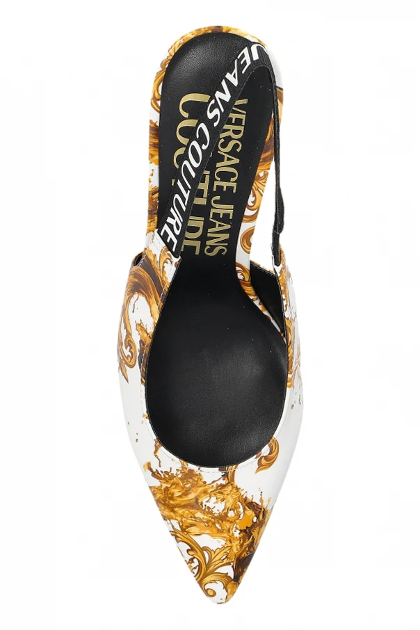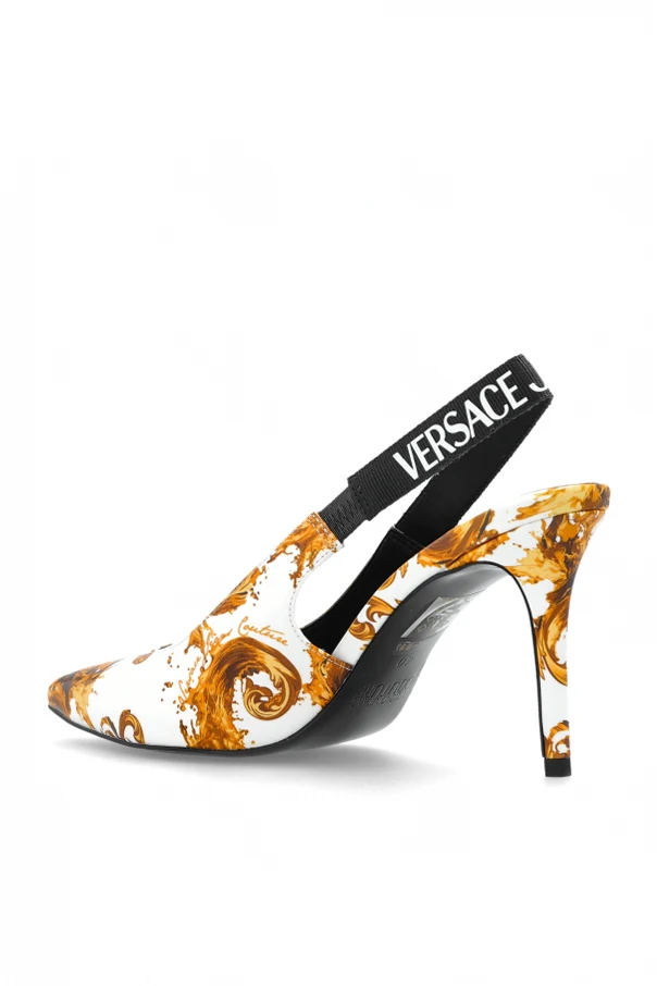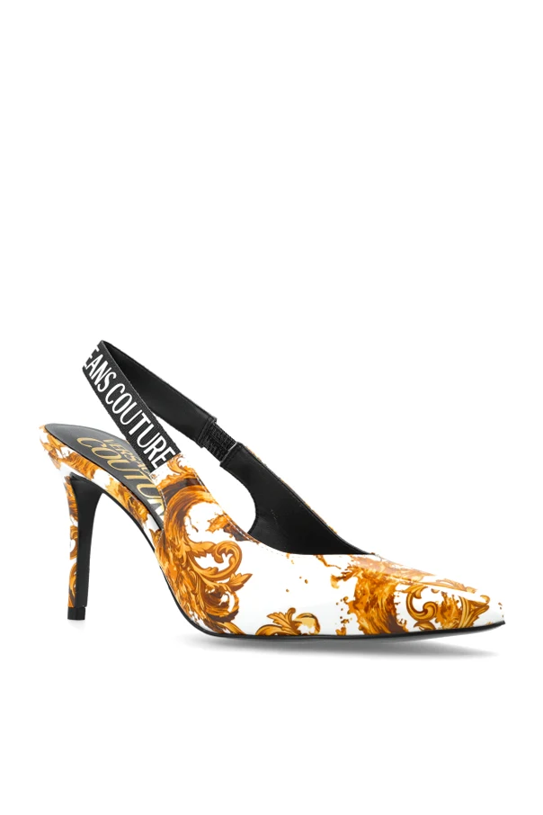 A quintessential expression of contemporary sophistication, these slingback heels from Versace Jeans Couture effortlessly embody the maison's commitment to haute design. The pointed toe silhouette and slender high heel elongate the leg, creating a refined and statuesque presence.