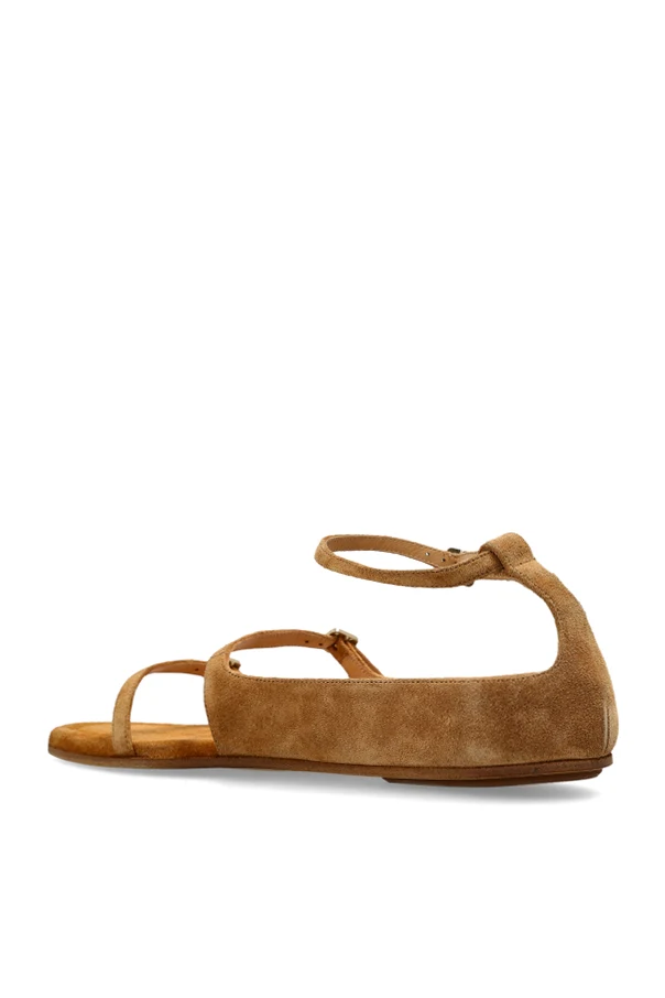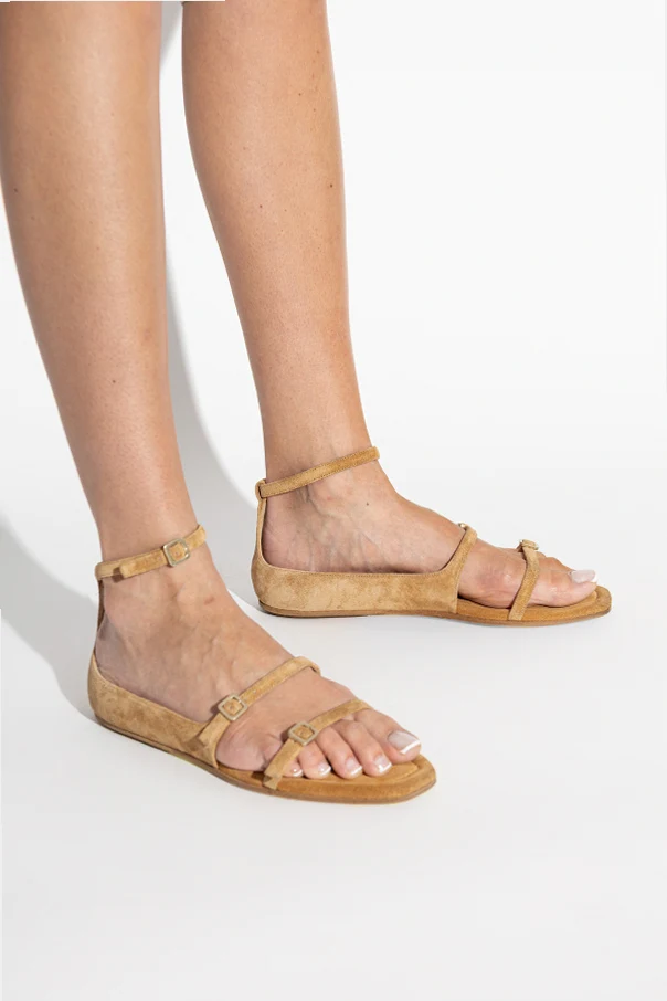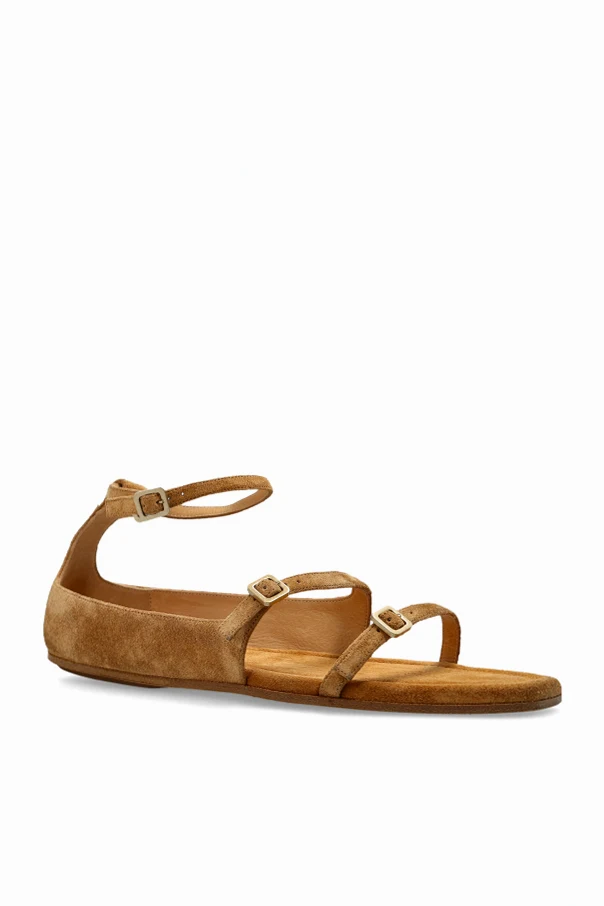 Three slender, suede-wrapped straps—meticulously contoured with delicately adjustable buckles—elegantly frame the foot and ankle, allowing for a custom, truly graceful fit. Their distinction lies in impeccable tailoring and the tactile richness of the finest leather, creating a peerless accessory for the modern connoisseur.