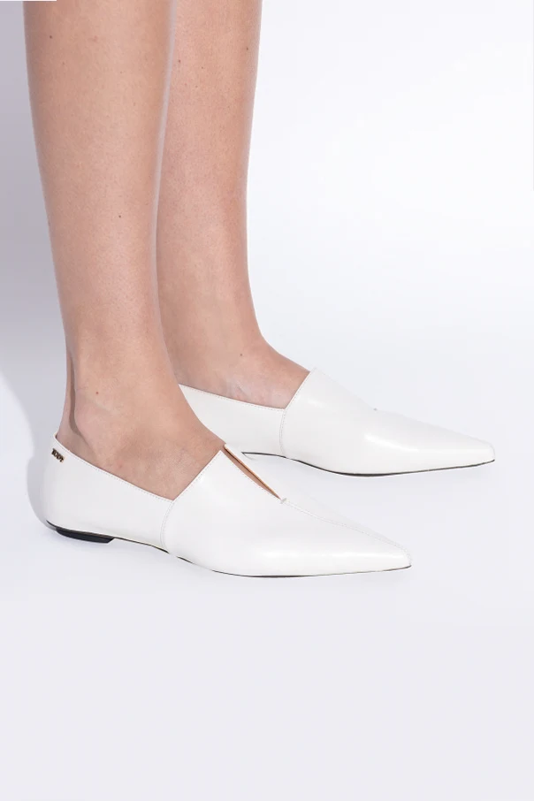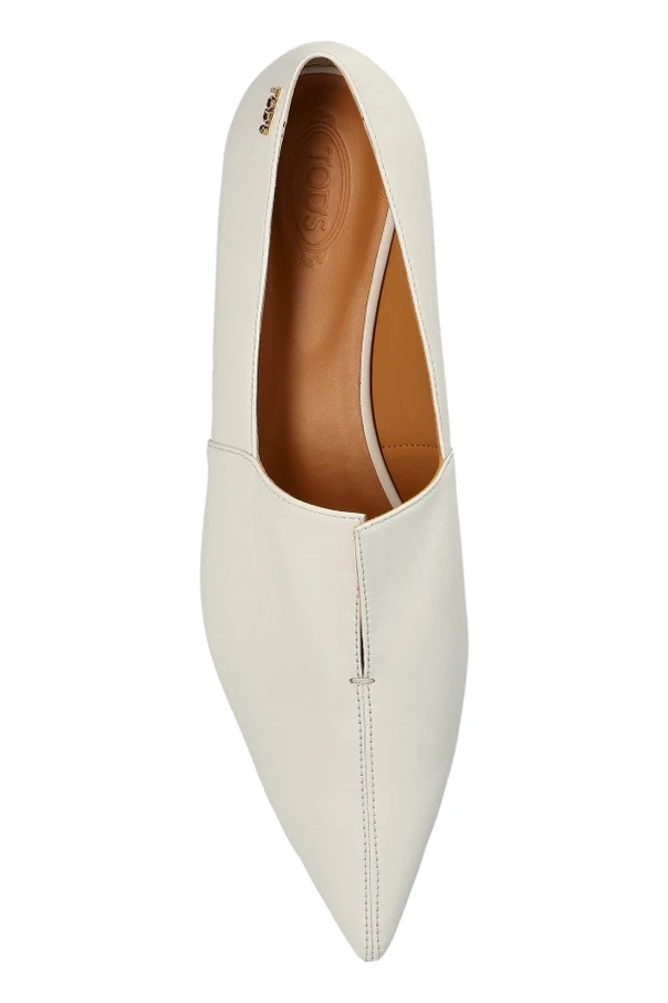Discover refined sophistication with these pointed-toe ballerinas by Tod’s , an expression of timeless minimalism. Impeccably crafted from sleek, smooth white leather, both inside and out, these flats radiate understated luxury. The elongated, slender silhouette and sharply pointed toe accentuate the elegance of the design, while a subtle sheen conveys the exceptional quality of the materials. A discreet metal logo at the heel adds a distinguished touch, perfectly complementing the minimalist aesthetic. The central stitch detail along the toe adds just the right measure of character, making these ballerinas an iconic wardrobe staple for the discerning woman.