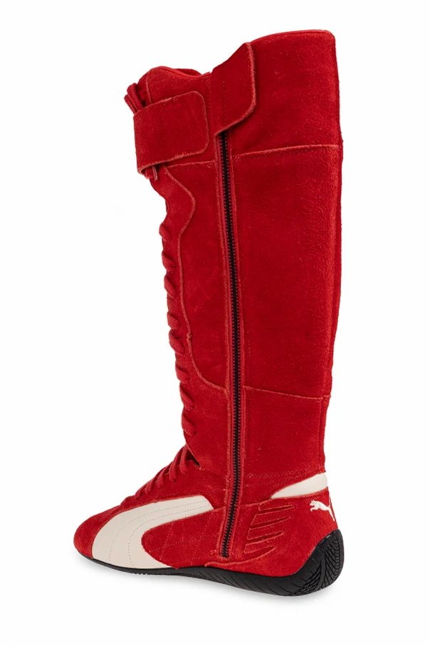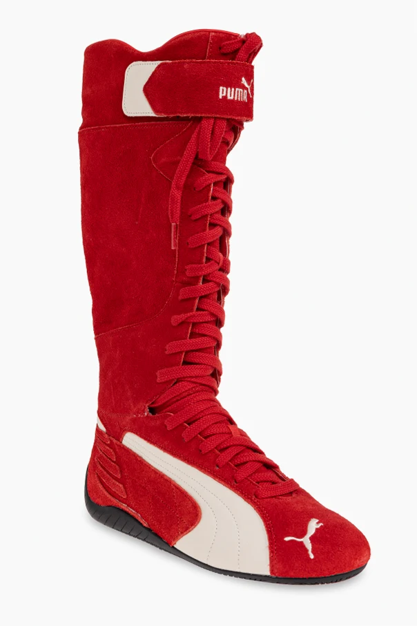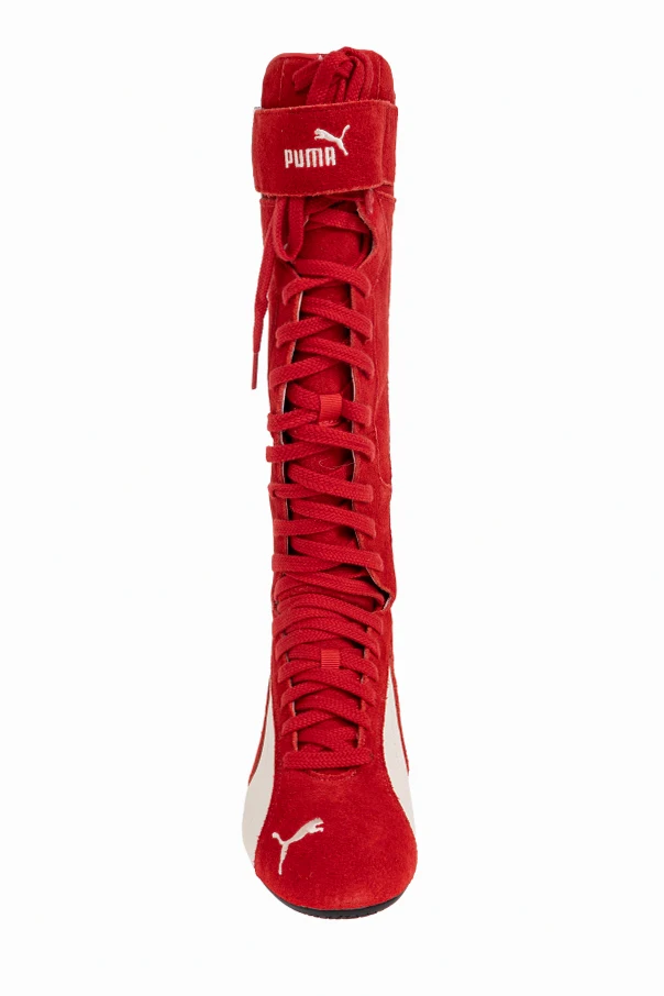 Exuding audacious sophistication, the PUMA X REPRESENT high-top sneakers redefine modern athletic elegance. Reaching just below the knee, this striking silhouette draws inspiration from boxers’ and motorcyclists’ boots, masterfully integrating a sleek elongated form for a glove-like fit.