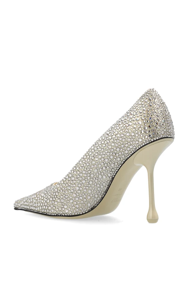Exuding refined sophistication, the Ixia mid-heel pumps from Jimmy Choo radiate timeless glamour. Artfully shaped with a classic pointed almond toe and a distinctively sculpted mid-height heel, these pumps elegantly elongate the silhouette while promising undeniable poise.