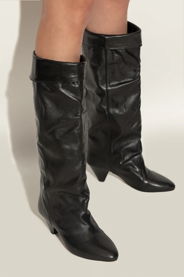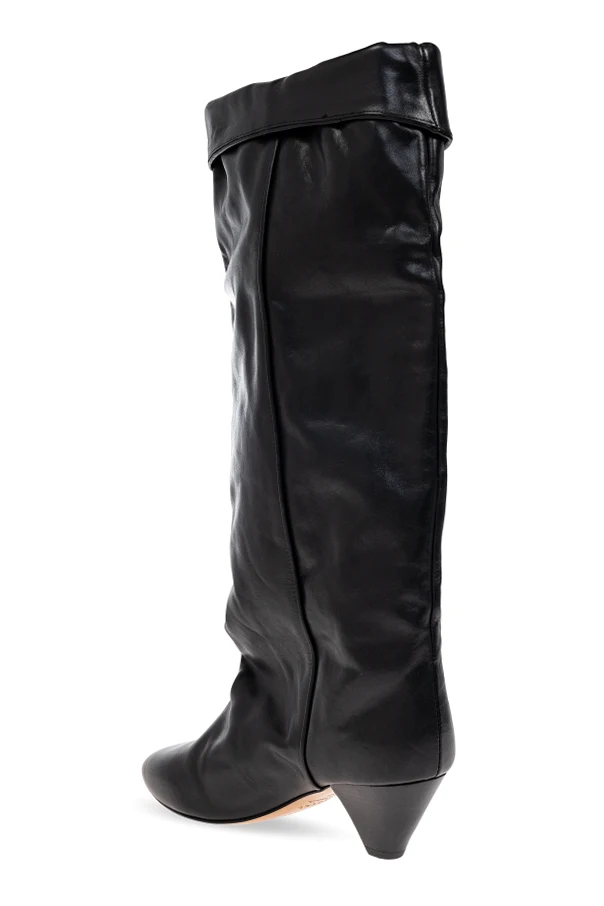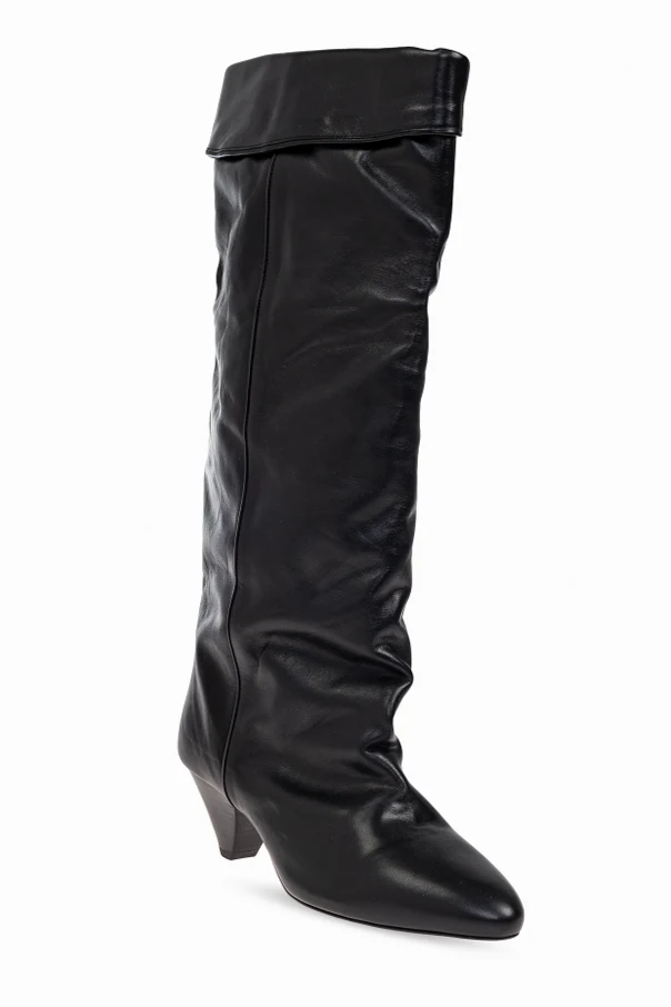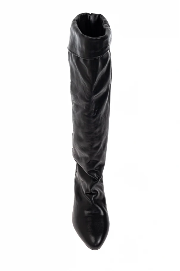 The Elita Heeled Boots by Isabel Marant encapsulate refined sophistication with their timeless silhouette. Crafted from supple, premium natural leather with a subtle sheen, these knee-high boots exude understated luxury. The lightly ruched shaft gracefully extends below the knee, culminating in a bold, outward-turned cuff that distinguishes their unique profile.