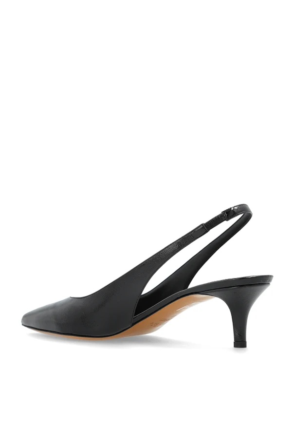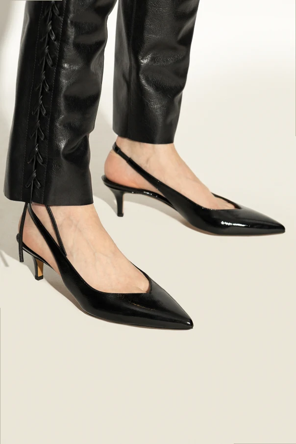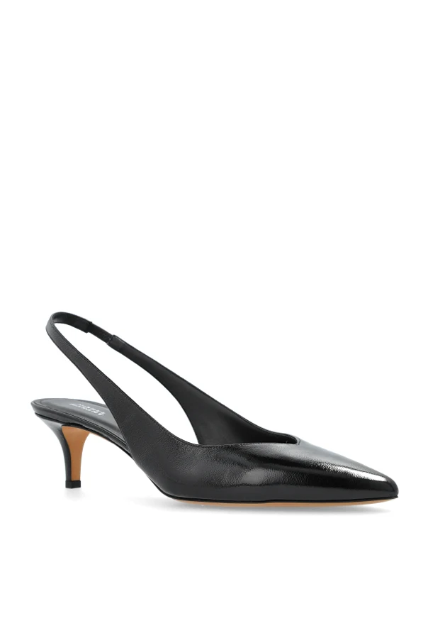 Step into an aura of refined distinction with the Padim Heeled Shoes by Isabel Marant . Sculpted from lustrous, premium patent leather, these black slingback pumps offer an exquisite elongated silhouette, defined by a sharply pointed toe and a gracefully contoured mid-height heel. The minimalist design—with its pristine, uninterrupted lines—allows craftsmanship to take center stage, while the impeccable finishing and precision-cut edges evoke sheer sophistication.