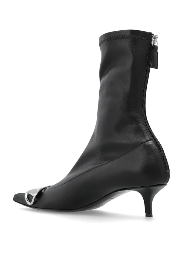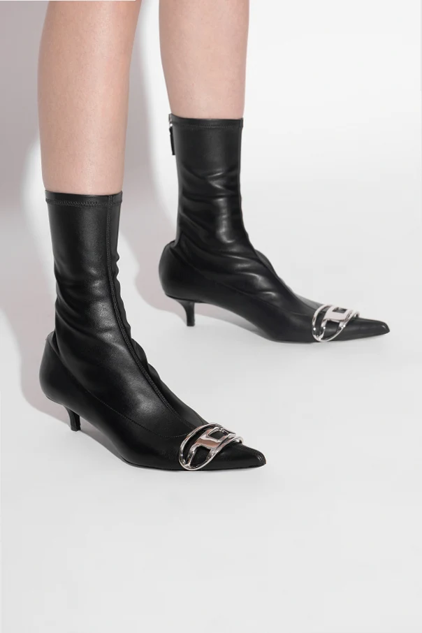 The D-VENUS Ankle Boots by Diesel redefine sophisticated minimalism. Crafted from exceptionally smooth, high-quality black leather both inside and out, these sock boots embrace the leg with an effortlessly sleek silhouette. Their elongated, sharply pointed toe and graceful kitten heel evoke modern femininity while providing a delicate lift.