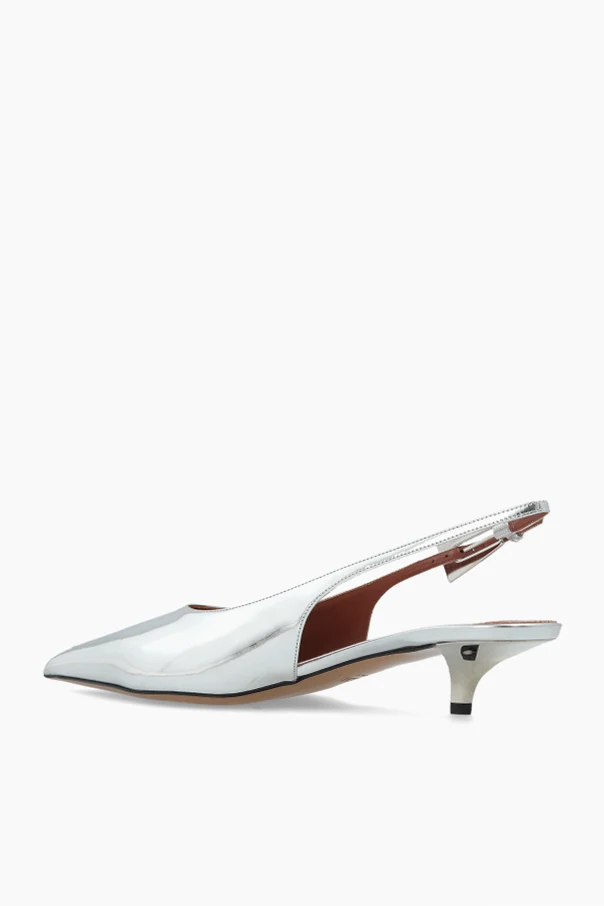 Introducing the Jessica Heels by Paris Texas —a stunning embodiment of contemporary sophistication. Crafted in Italy, these exceptional slingback pumps feature a sleek, elongated pointed toe and a refined kitten heel, exuding both poise and modern allure. The exterior shines in a flawless, mirror-like metallic finish, showcasing an extravagant yet tastefully minimalist aesthetic. Every line is purposeful, with the unadorned, polished surface emphasizing the shoe’s exclusive quality.