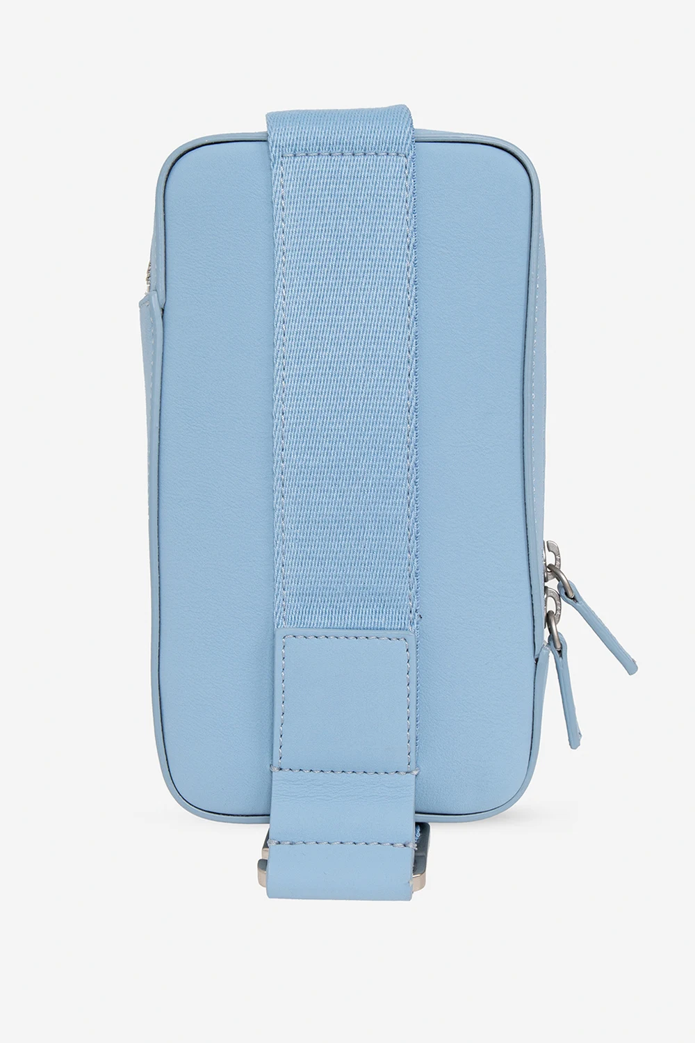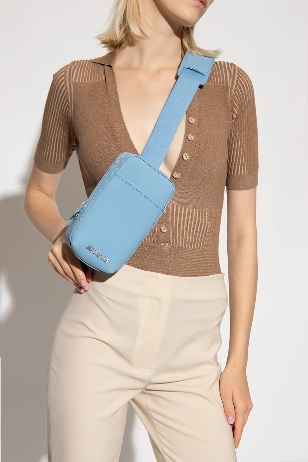 Light blue ‘Le Giardino’ shoulder bag from Jacquemus. Made from leather, this design secures with a two-way zipper and features a metal logo plaque accompanied by a slip pocket on the front, an adjustable shoulder strap, silver-tone metal hardware and one internal compartment with a card slot.
