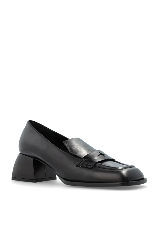 Experience a new paradigm of luxury with the Bulla Cara mid-heel pumps by Nodaleto . Meticulously crafted from exquisitely polished calfskin, these shoes captivate with their architectural, trapezoidal heel—a bold statement of contemporary artistry refined through impeccable craftsmanship.