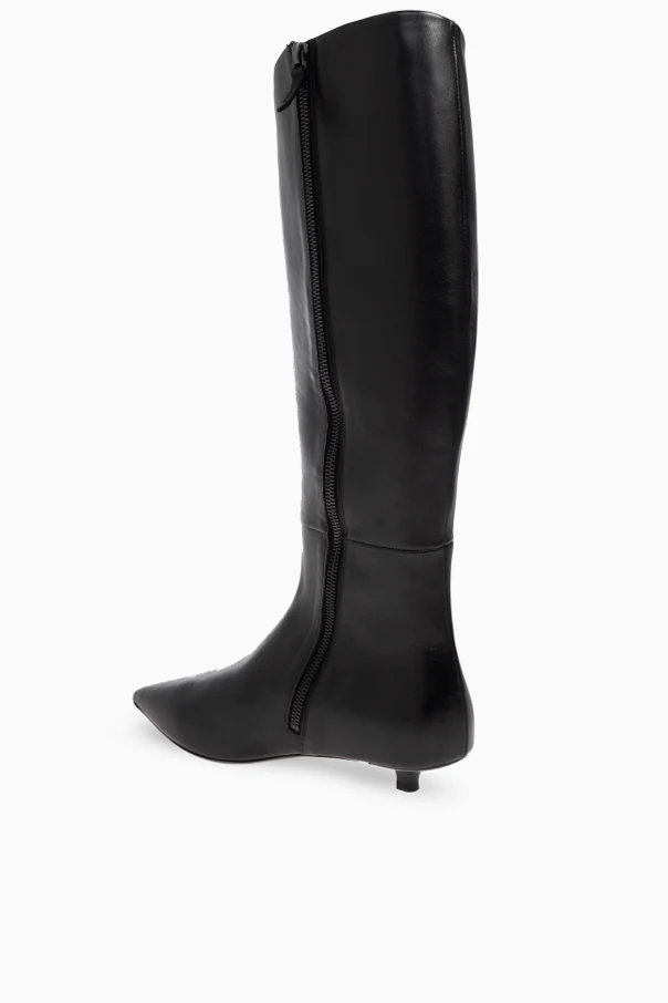 Sophisticated and effortlessly refined, these Knee-Length Leather Boots by Marsell epitomize modern Italian artistry. Their strikingly elongated, pointed toe and tall, slender shaft evoke a timeless silhouette, while a low kitten heel ensures comfort without compromising elegance.
