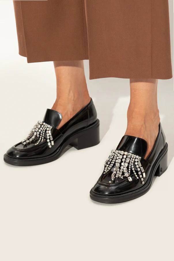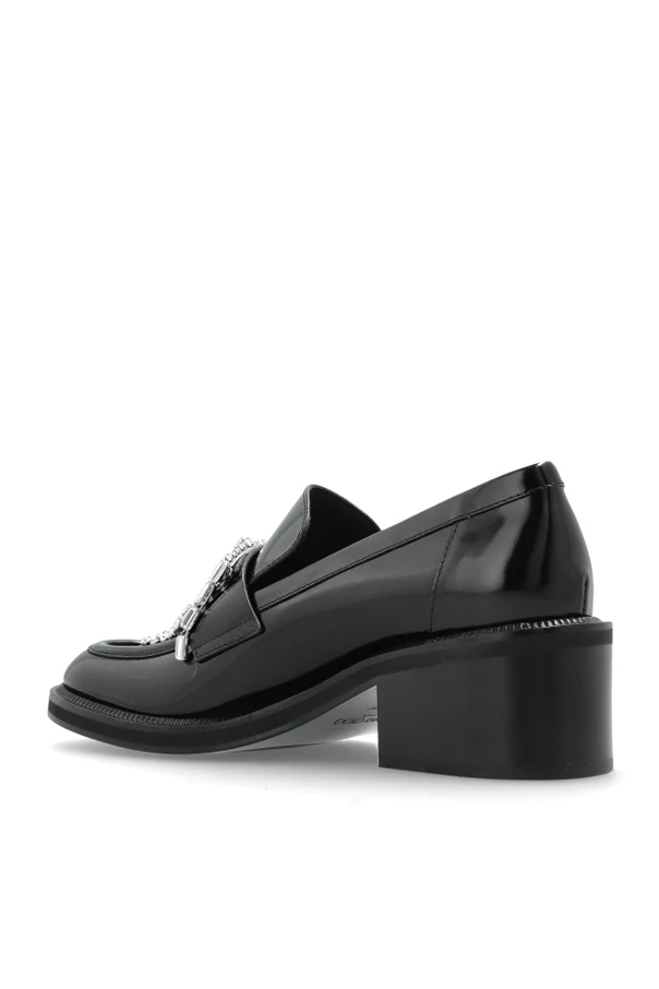 The ‘Tylor’ Heeled Pumps by Jimmy Choo exude timeless refinement, blending classic loafer silhouettes with a bold contemporary spirit. Crafted from superior black patent leather, they command attention through a lustrous, mirror-like sheen that complements their sleek, rounded toe and gracefully elongated vamp.