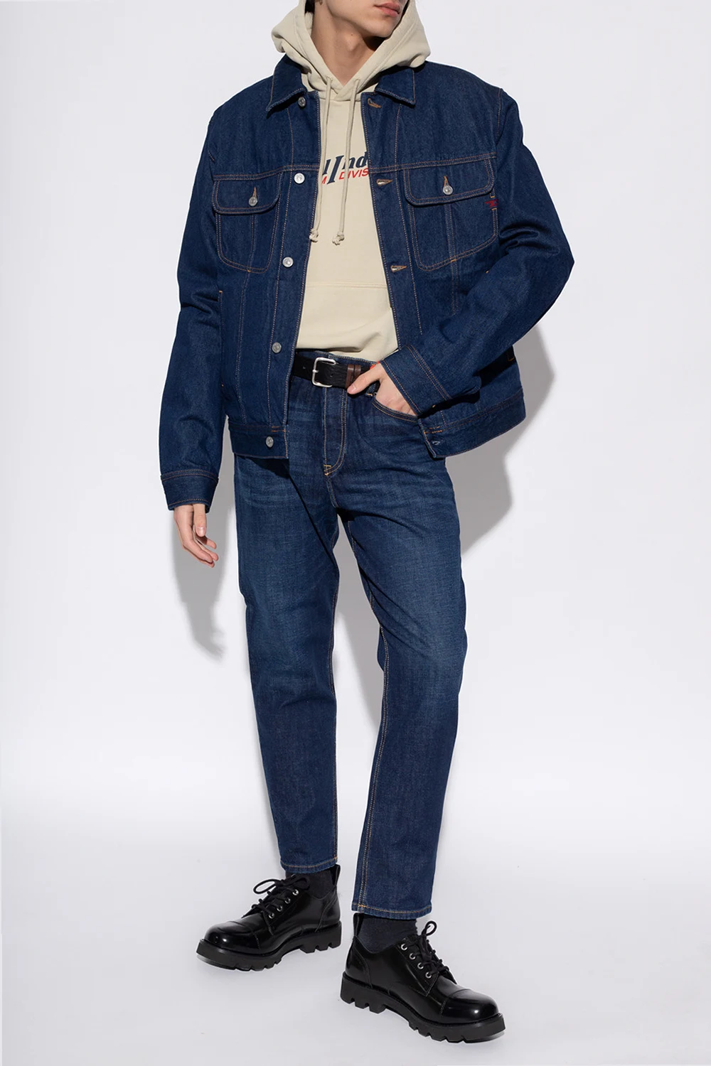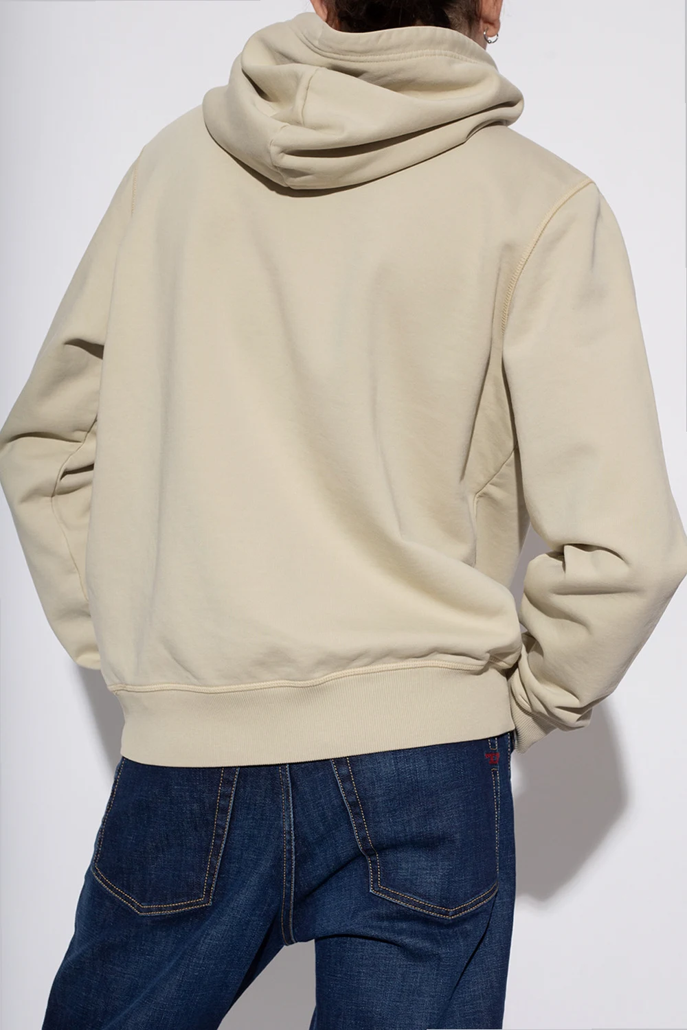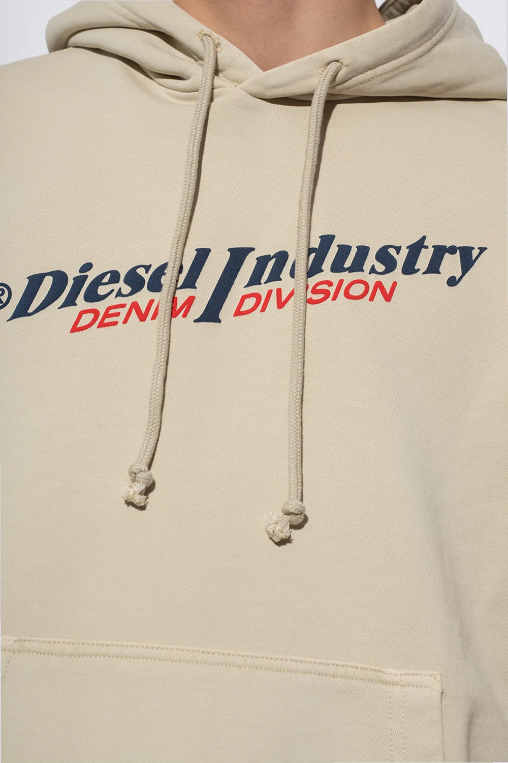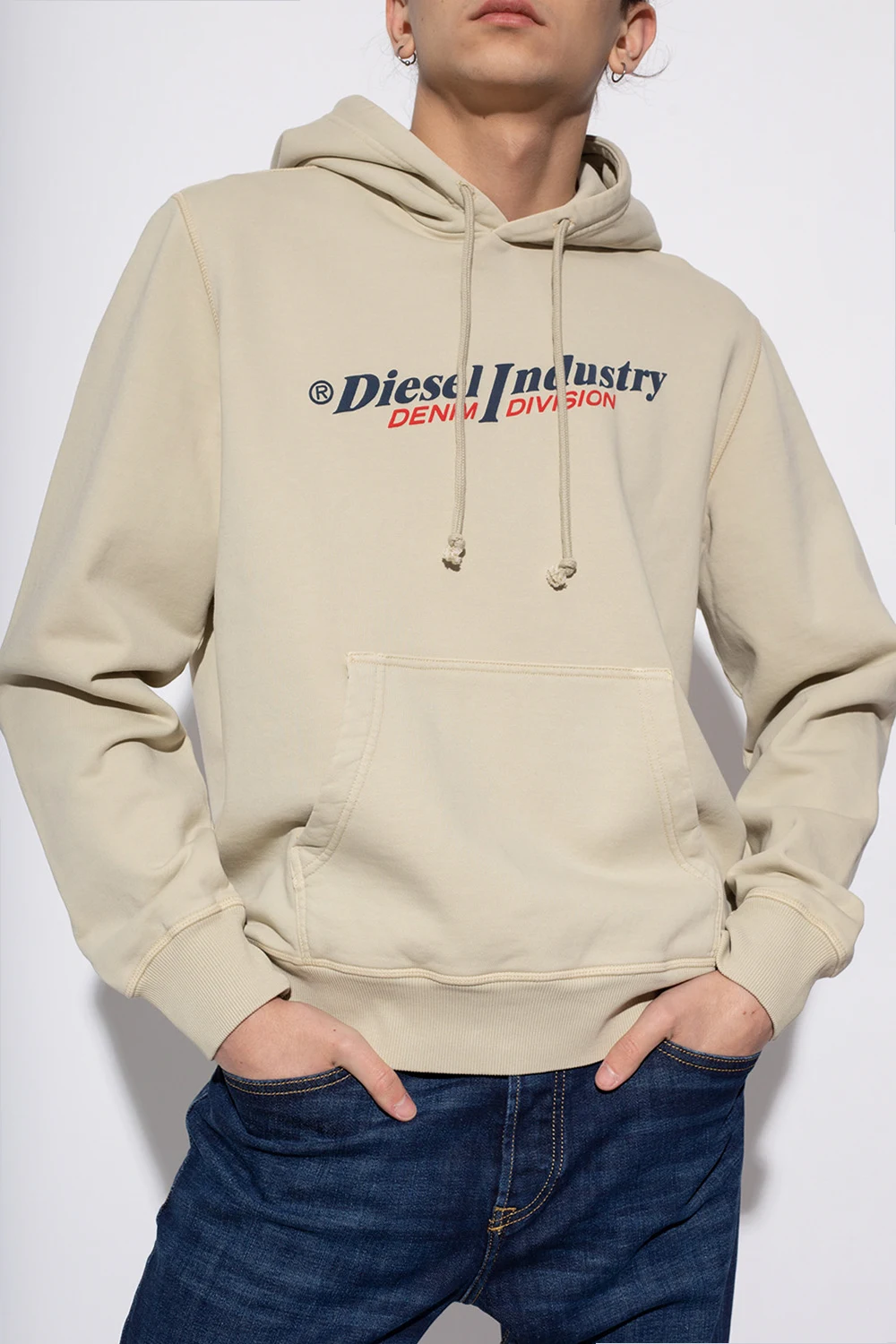 Beige \'S-Ginn\' sweatshirt with a drawcord-adjustable hood from Diesel. Made of cotton jersey, this style features a navy blue and red logo on the front, a kangaroo pocket and a ribbed bottom hem and cuffs.