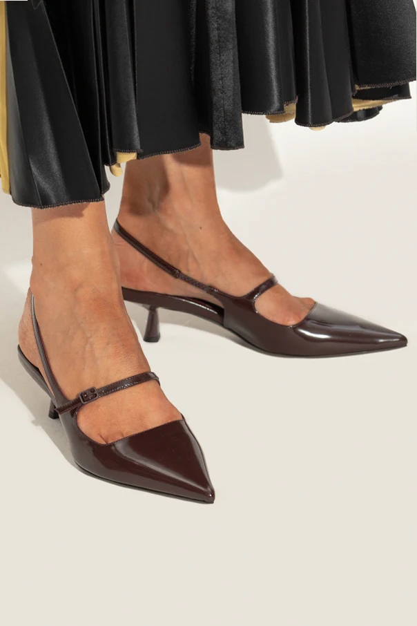 The ‘Didi’ Heels from Jimmy Choo’s exclusive collection epitomize refined sophistication. Showcasing a timeless elongated pointed toe and a graceful slingback silhouette, these heels boast a mid-height, slender heel that subtly widens at the base for an air of effortless elegance.
