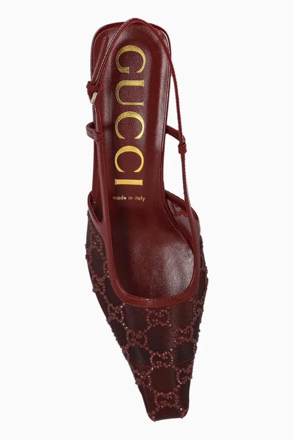 Discover refined sophistication with these Gucci slingback pumps in a deep burgundy hue, echoing the maison’s storied heritage with a contemporary twist. The gracefully pointed toe and subtle mid-heel—crafted in the iconic kitten style—create an elegant silhouette, while artisanal mastery shines in every detail.