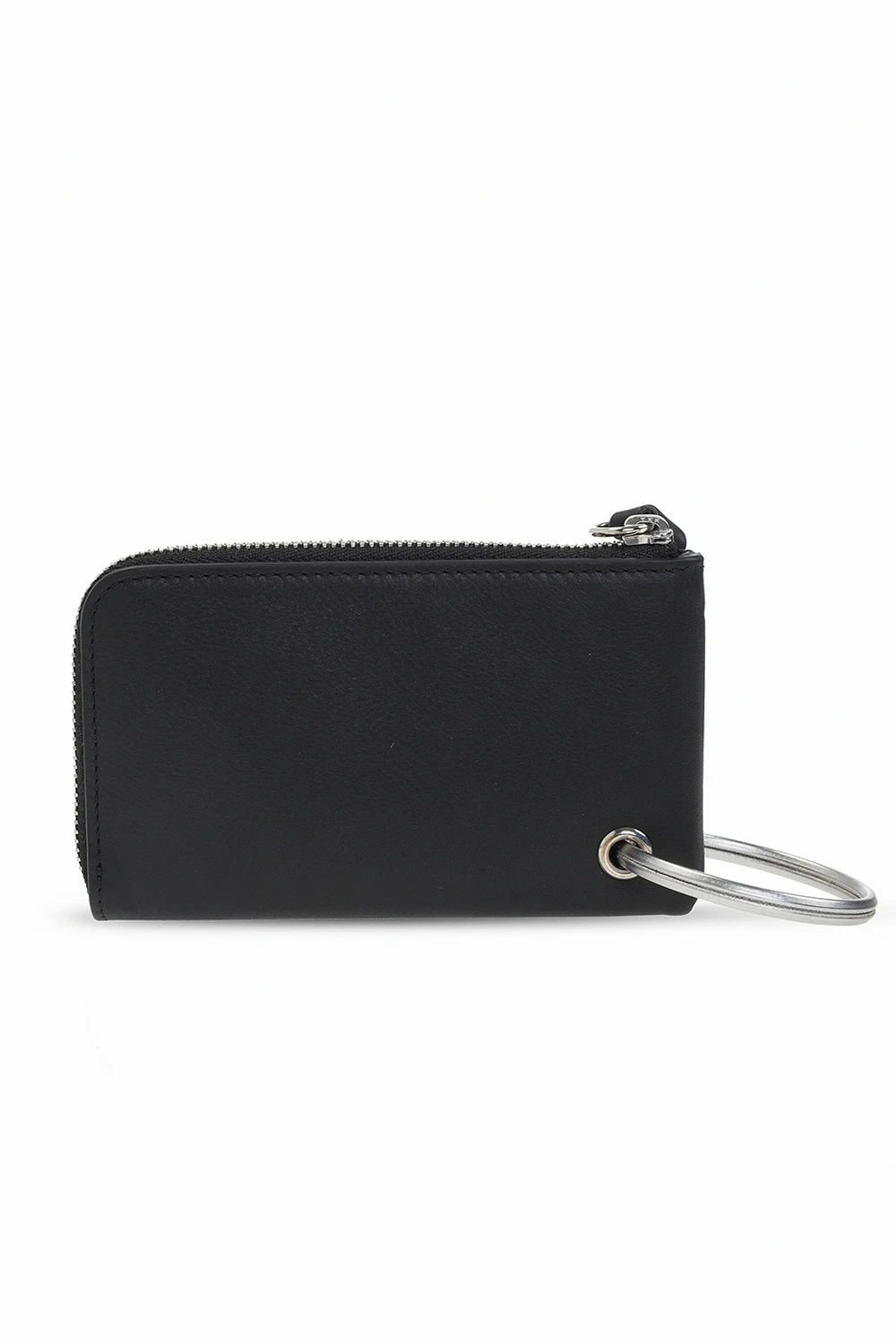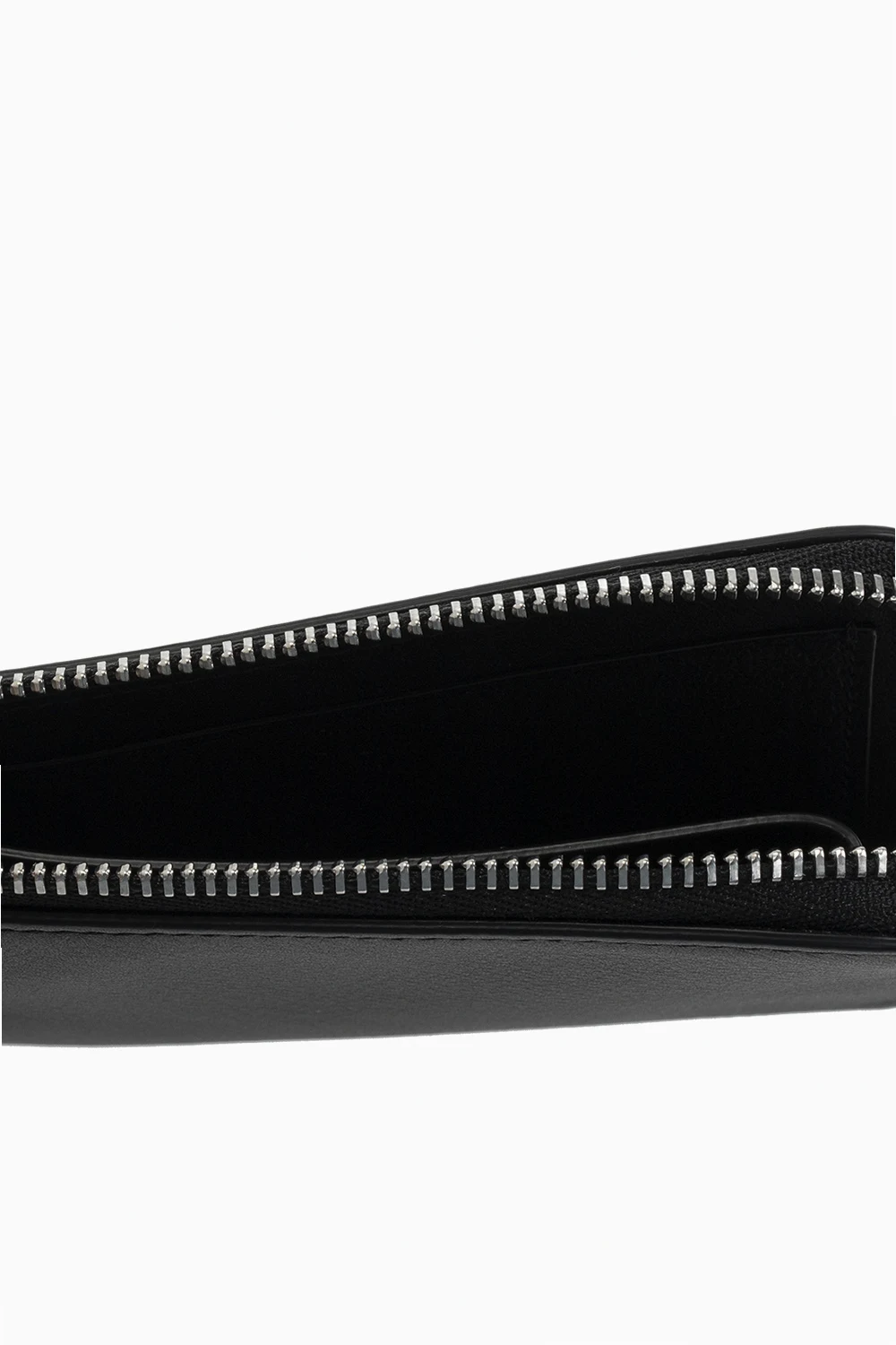 Black ‘Jacky’ card holder from Ann Demeulemeester. Crafted from leather, this model features a zip fastening, appliqué, silver-tone metal hardware and two internal compartments with three card slots.