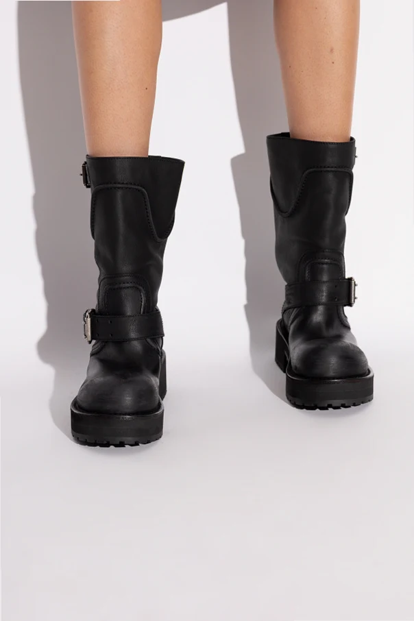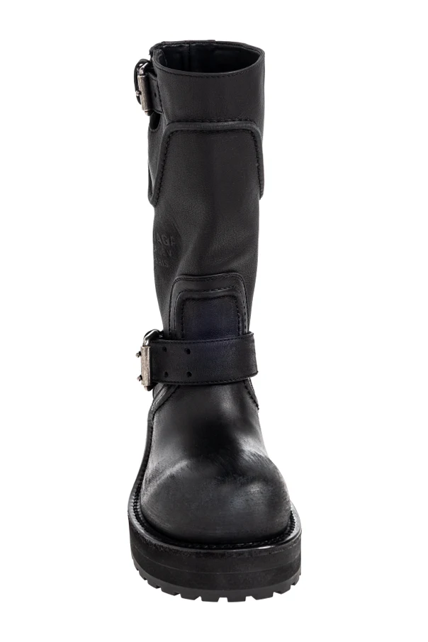 Immerse yourself in the refined boldness of the Venom Leather Ankle Boots by Balenciaga. These boots capture the unapologetic spirit of biker-inspired design with their robust silhouette, accentuated by a wide shaft and a prominently squared toe. Crafted from supple, matte calfskin leather both inside and out, they ensure enduring comfort and a luxurious, understated sheen.