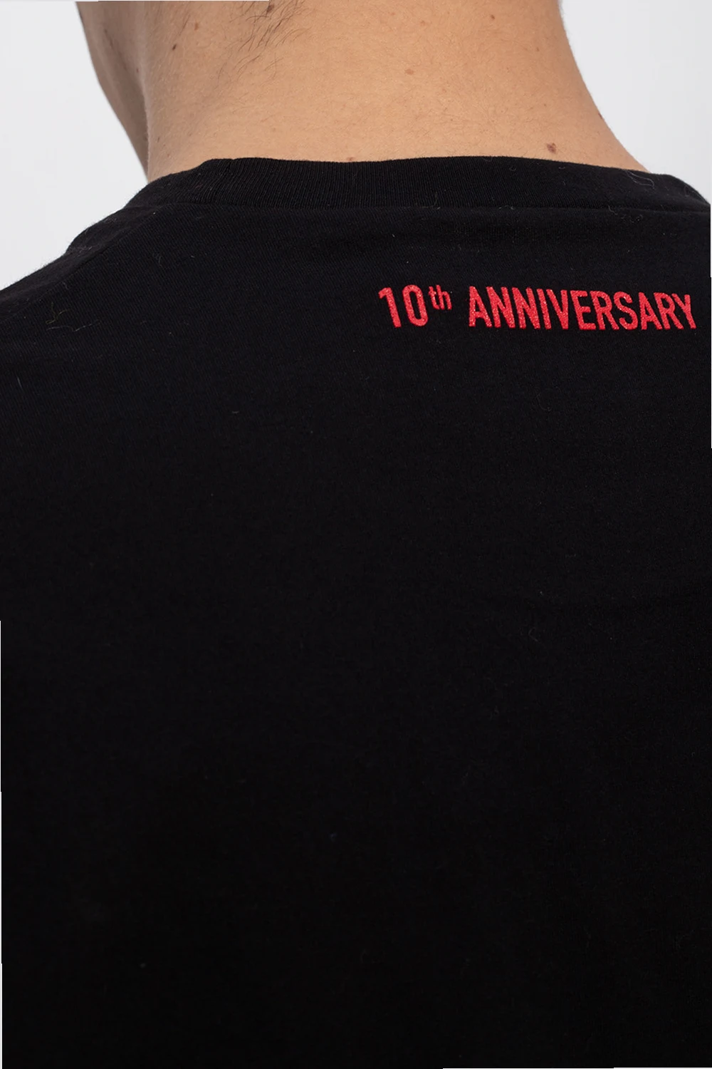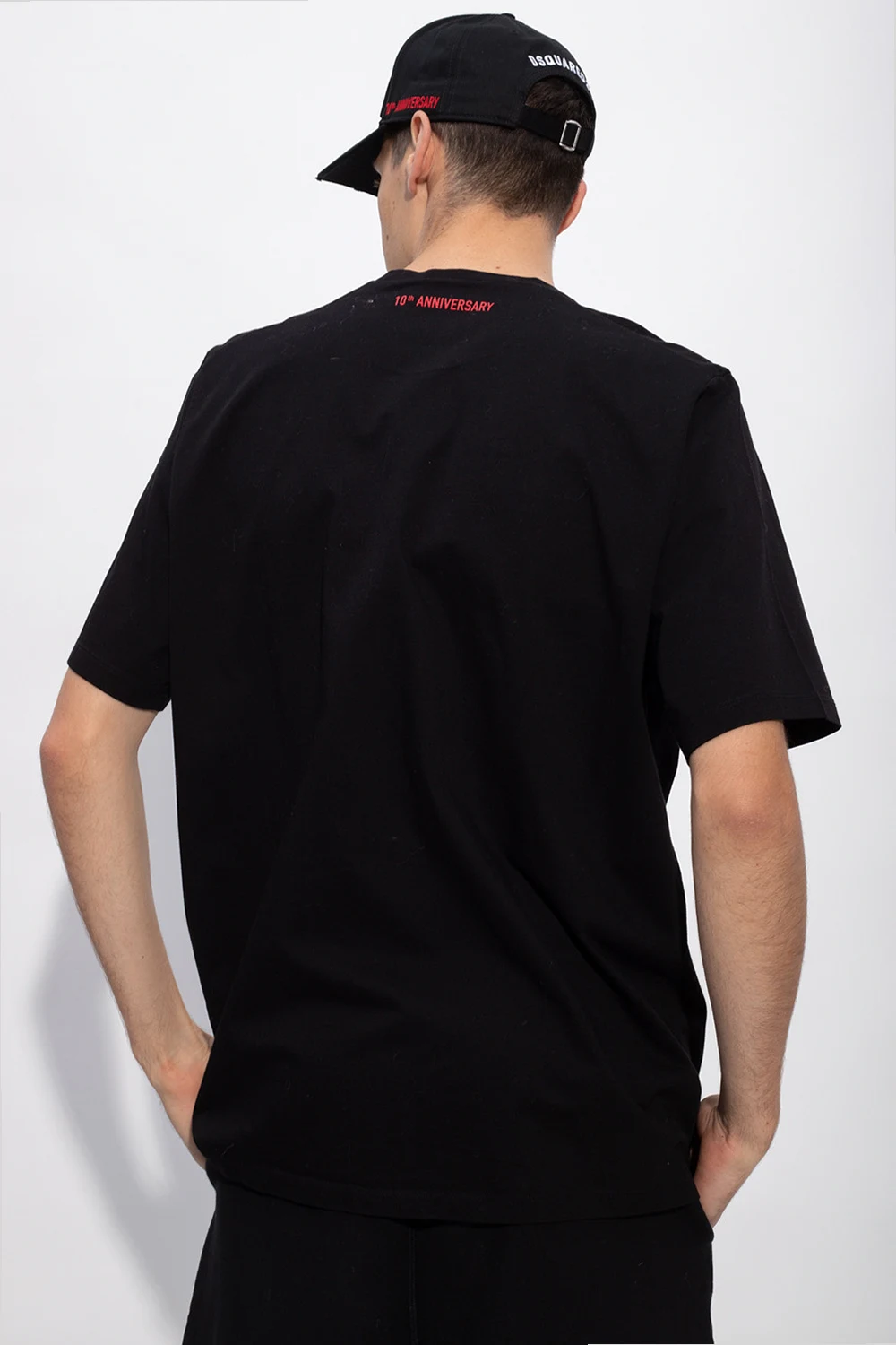 Black crewneck T-shirt from Dsquared2. Crafted from cotton, this style showcases short sleeves, an elasticated collar, a white and red motif with the brand's logo and a red graphic print on the back. Item designed to celebrate the 10th anniversary of VITKAC.