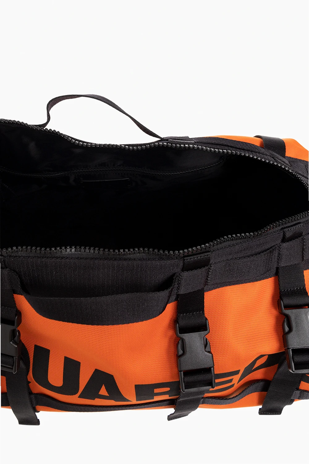 Orange and black holdall bag from Dsquared2. Fastened with a two-way zip, this model features a black logo print, decorative snaps, two half-round handles, detachable and adjustable shoulder strap as well as one internal compartment with one zip pocket.
