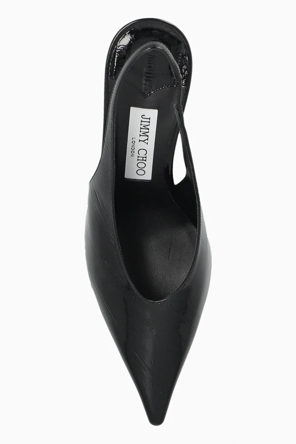 Immerse yourself in the striking allure of the Isa High-Heel Slingback Pumps by Jimmy Choo . These elegant black heels are expertly crafted from high-gloss patent leather, exuding an impeccable, luxurious sheen that commands attention with every step. The distinctly elongated, pointed toe silhouette lends a bold, modern edge, while the slender classic stiletto heel is artfully finished with a subtle flare at the base—epitomizing refined sophistication.