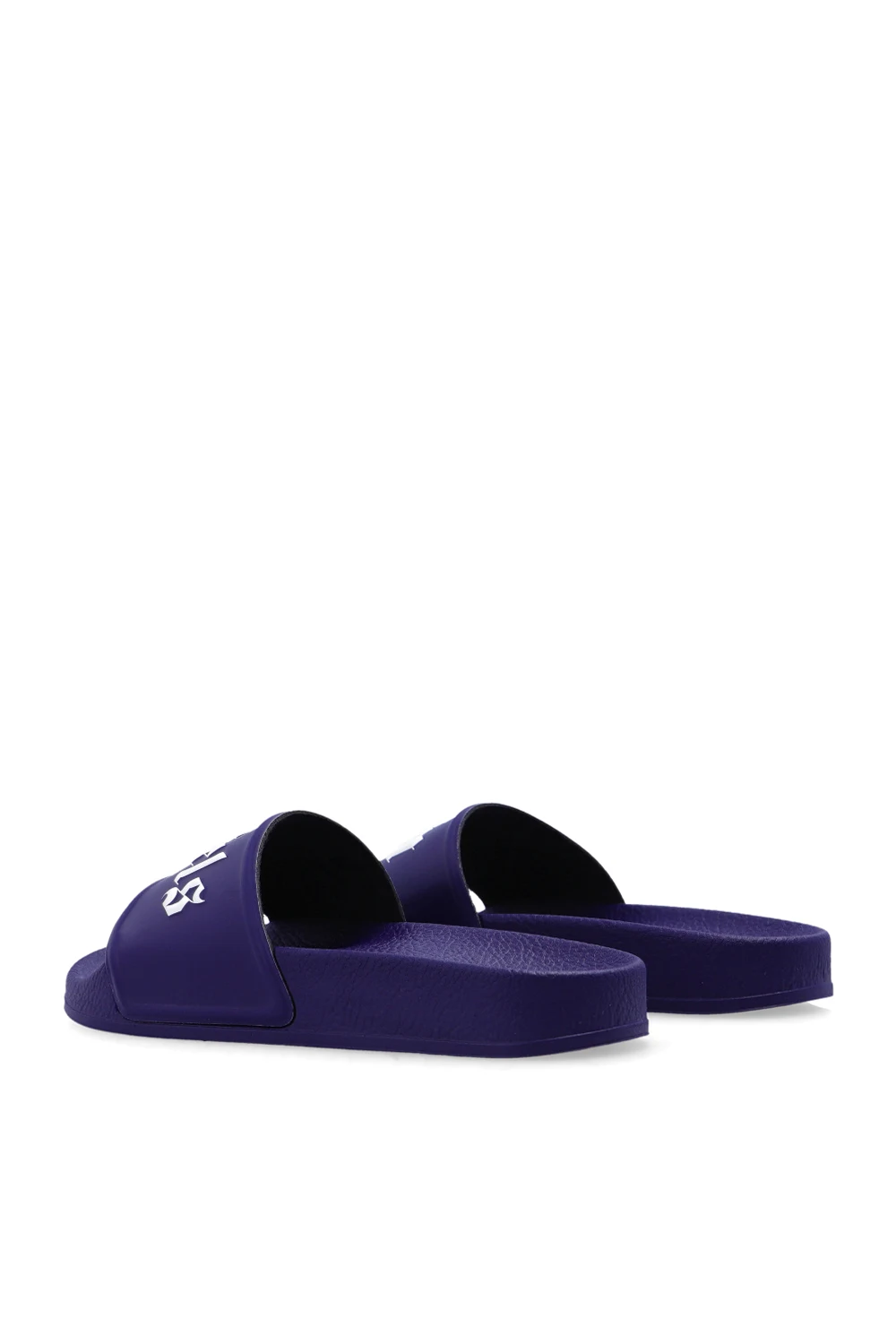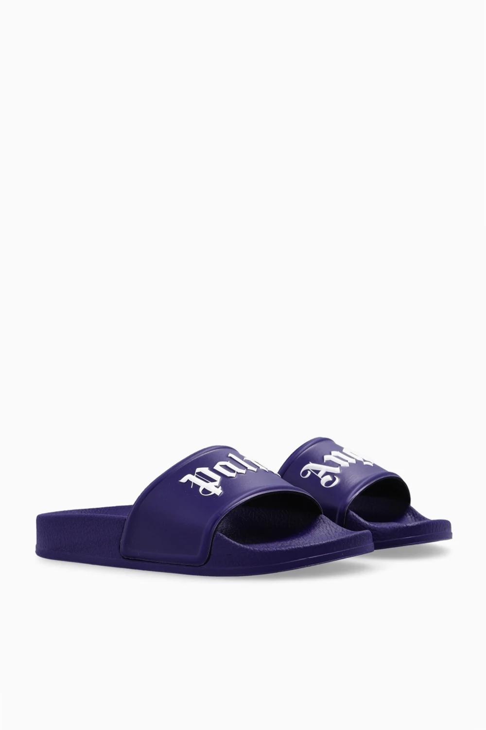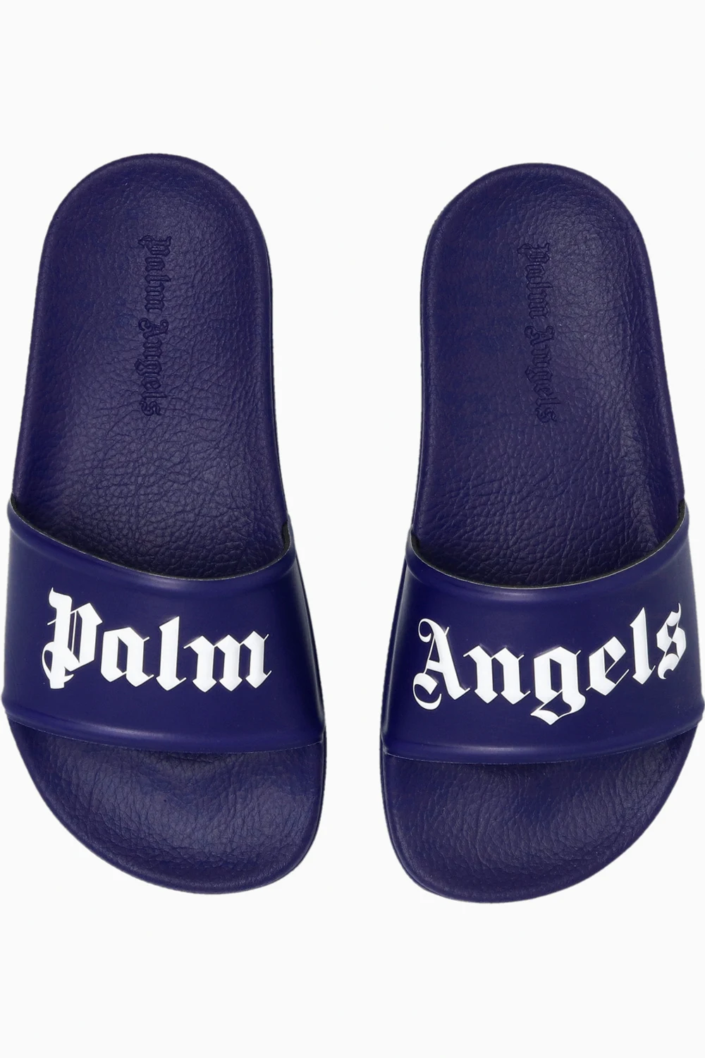 Navy slides from Palm Angels Kids. Made of rubber, this pair features a white logo print.