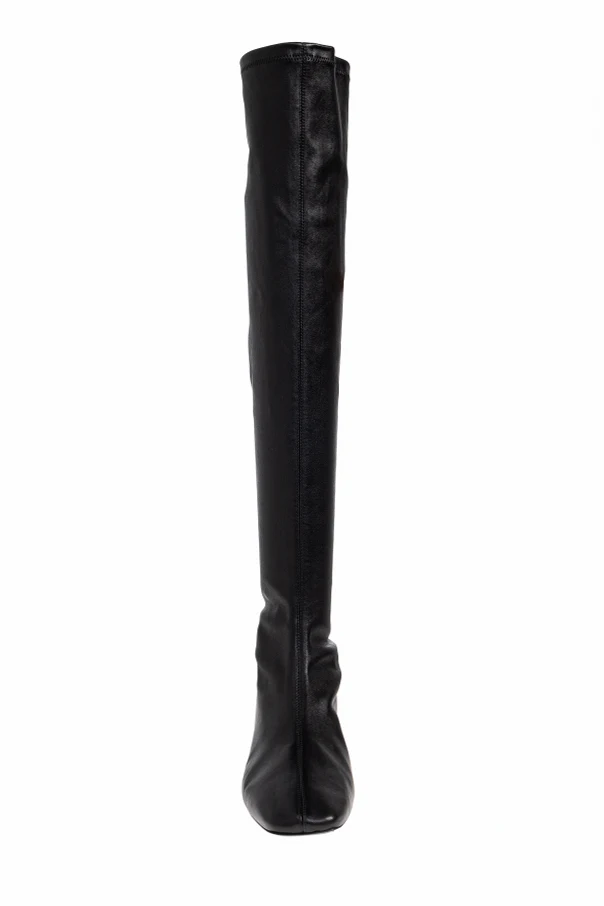 Exuding contemporary sophistication, these Over the Knee Leather Boots from TOTEME redefine understated elegance. Meticulously crafted from high-quality, buttery lambskin with a satin-smooth, subtle sheen, they envelop the leg in a slender, tailored silhouette that flatters every contour. The absence of visible stitching or embellishments accentuates their minimalist allure, while the gently elongated pointed toe imparts timeless refinement.