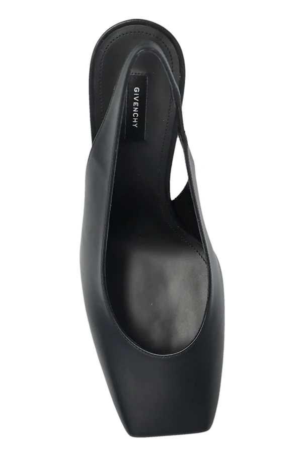 Experience the epitome of refined sophistication with these Leather Heeled Slingback Shoes by Givenchy, presented in a classic black hue. Crafted from sumptuous calf leather, these shoes exude exceptional elegance and unmatched craftsmanship. The signature slingback silhouette features a boldly sculpted, square toe—marrying timeless style with contemporary flair.