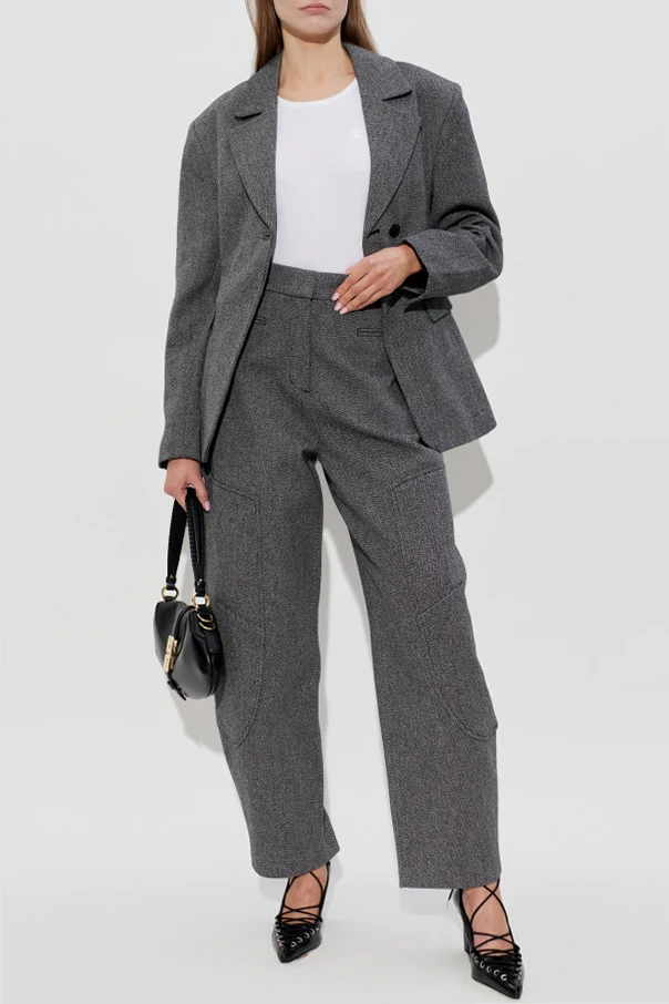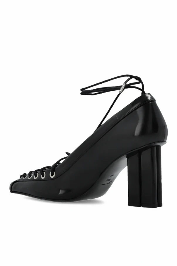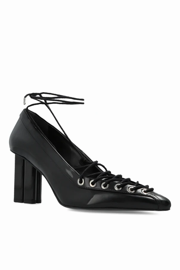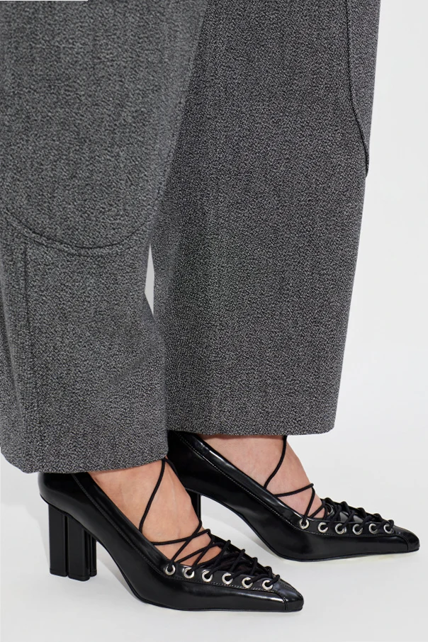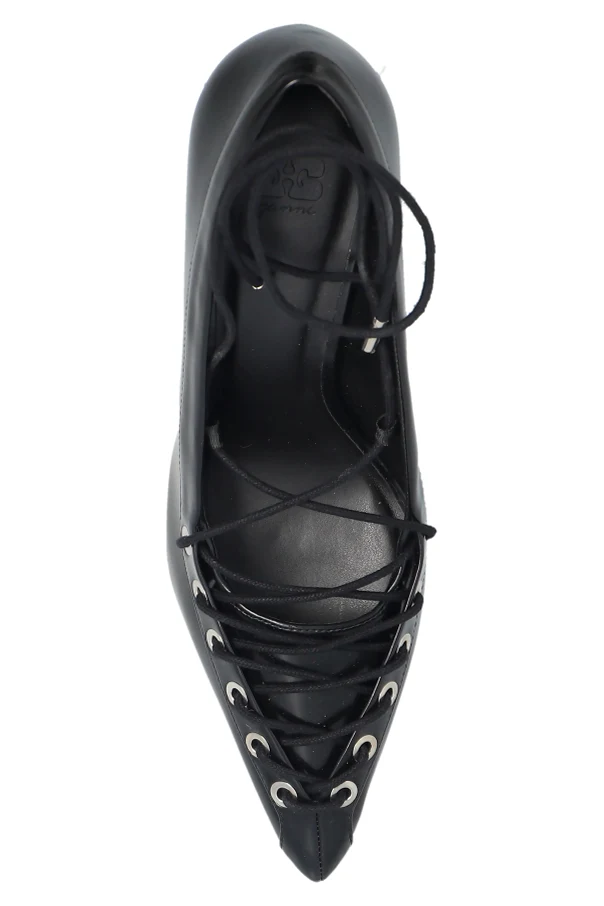 Discover an exquisite fusion of modern sophistication and classic charm with these black mid-heel pumps by Ganni . Meticulously crafted from lustrous, high-quality patent leather, these shoes command attention with their slender kitten heels and distinctly elongated, pointed toes—an embodiment of urban elegance.