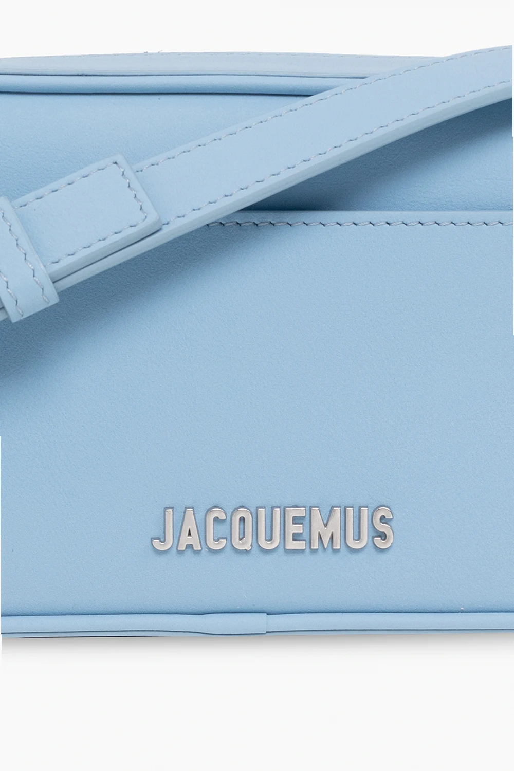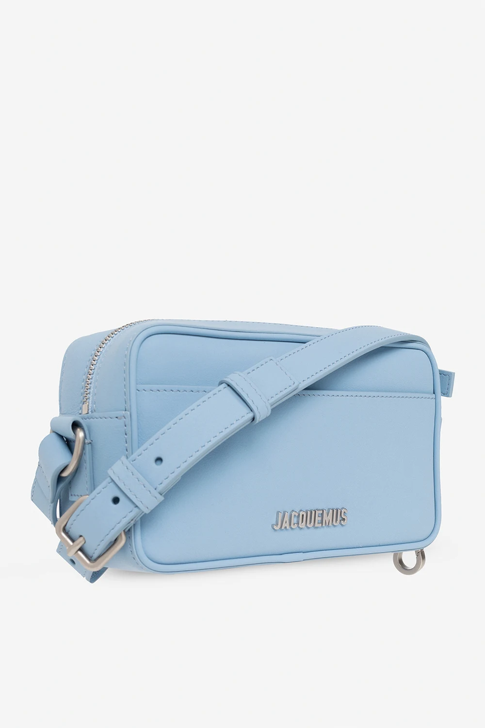 Light blue ‘Le Baneto’ shoulder bag from Jacquemus. Crafted from leather, this design secures with a zipper and showcases a metal logo application, external slip pockets on the front and back, a detachable and adjustable shoulder strap, silver-tone metal hardware and one internal compartment with a card slot.